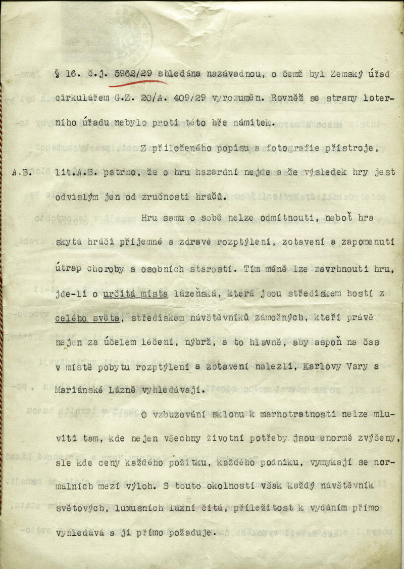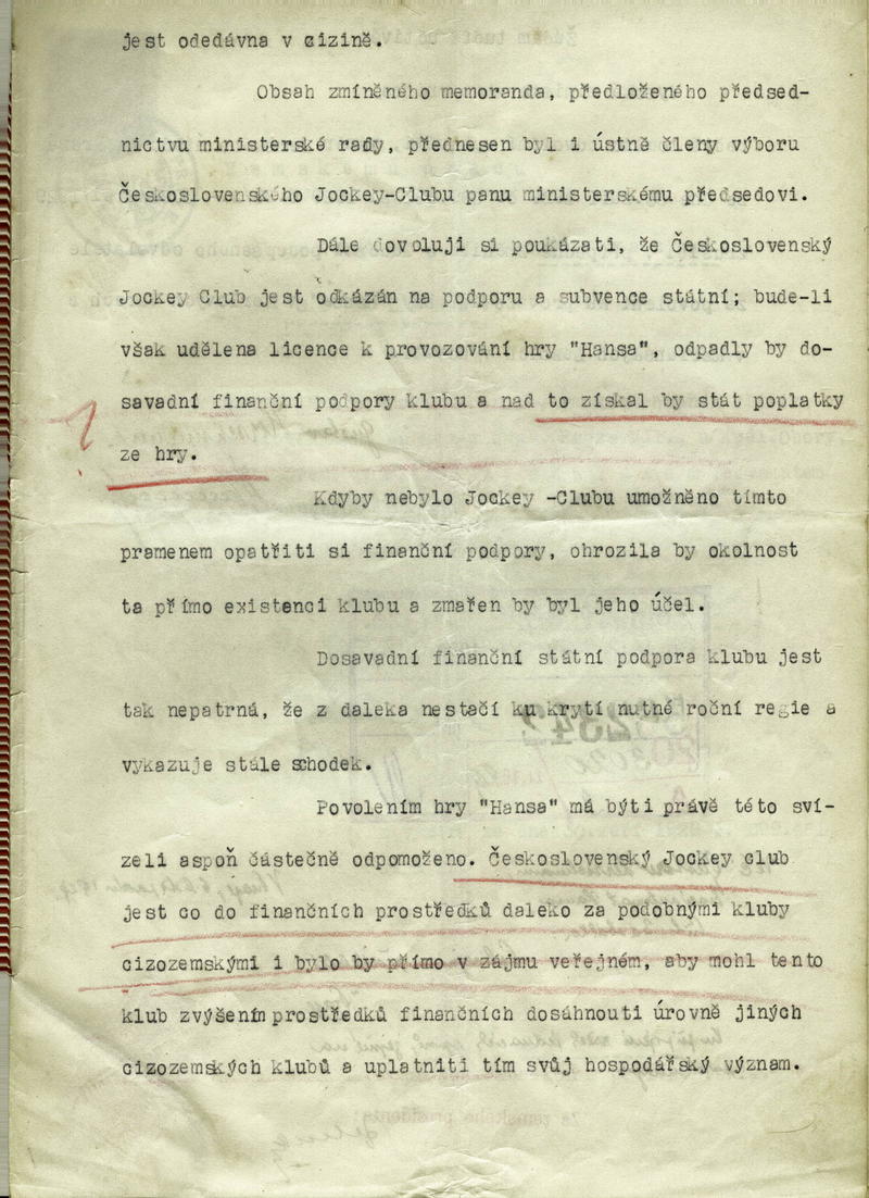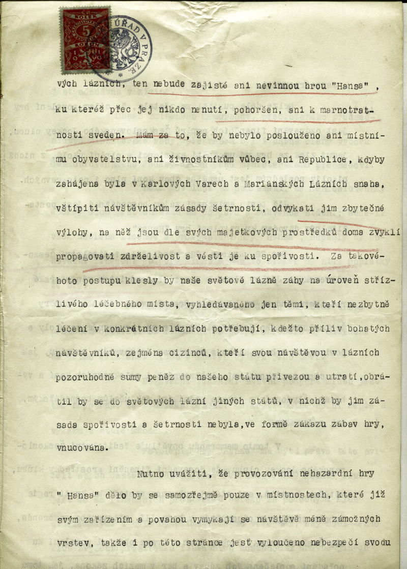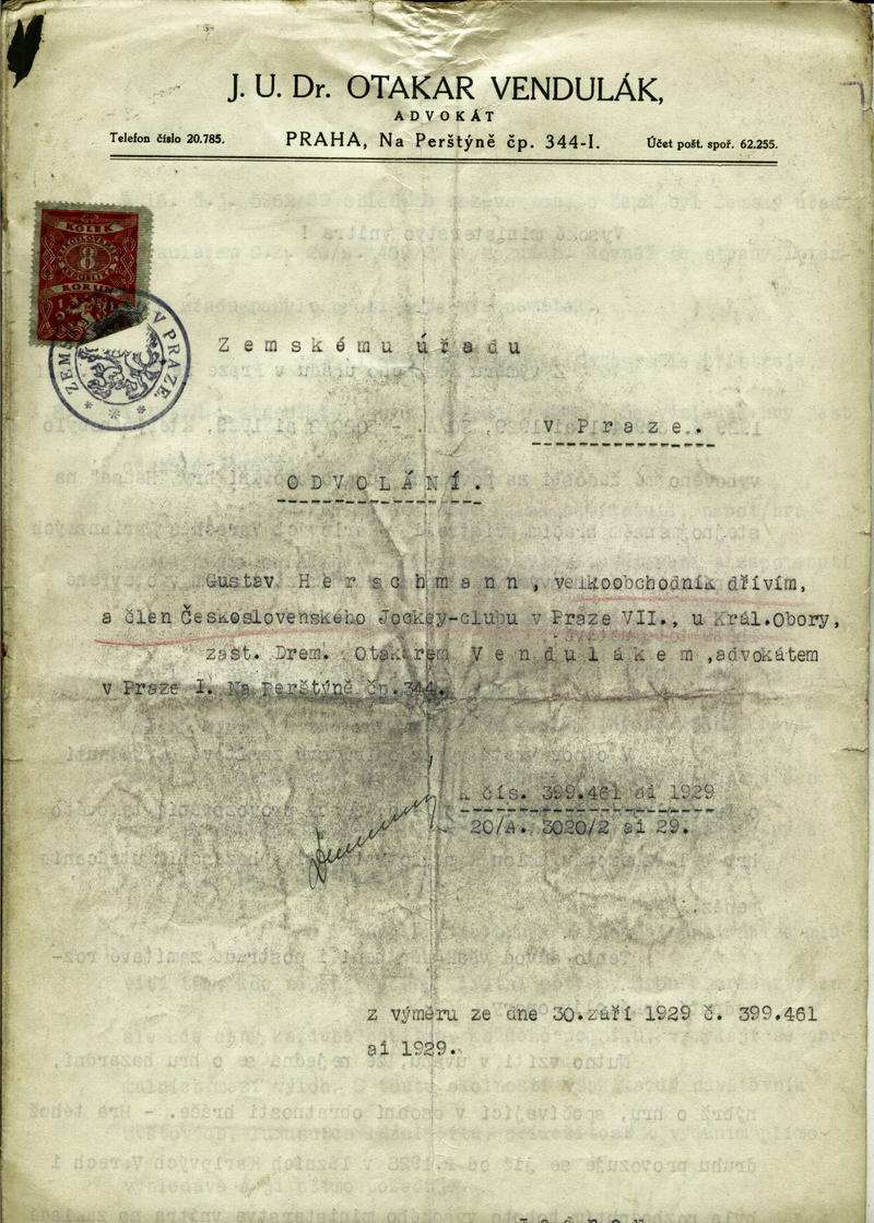 Herschmann Gustav: Odvolání proti zamítnutí provozování hry "Hansa"