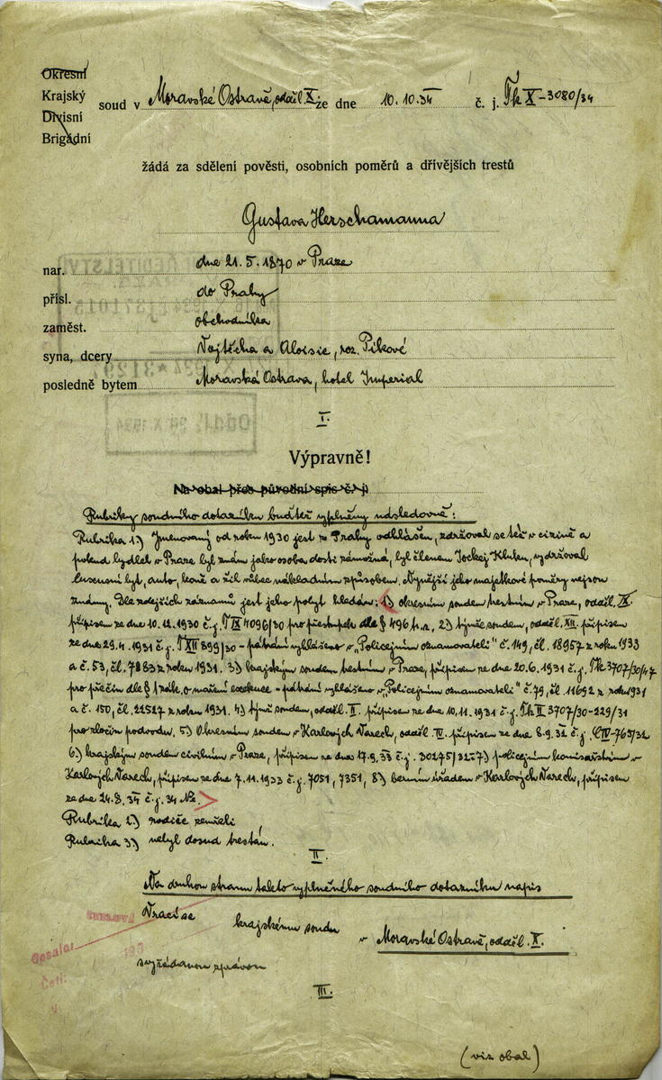 Herschmann Gustav: Šetření o osobě