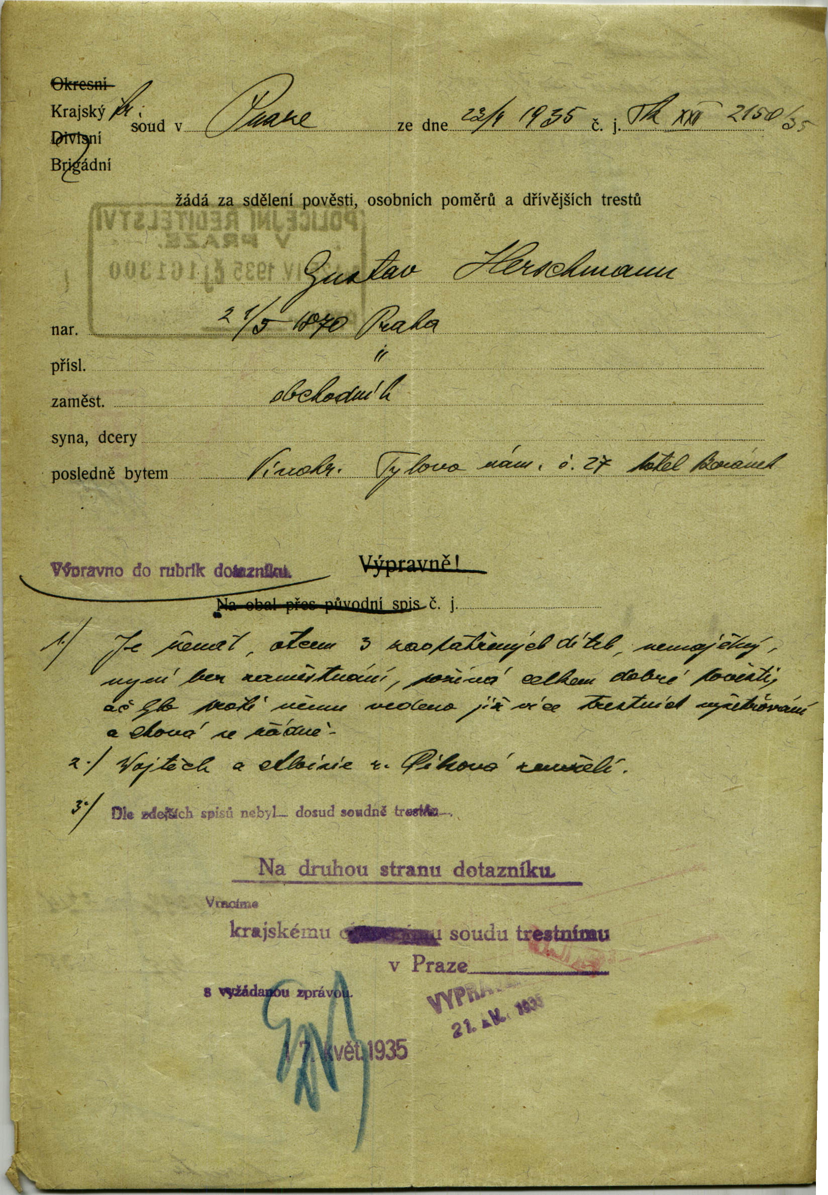 Herschmann Gustav: Šetření o osobě