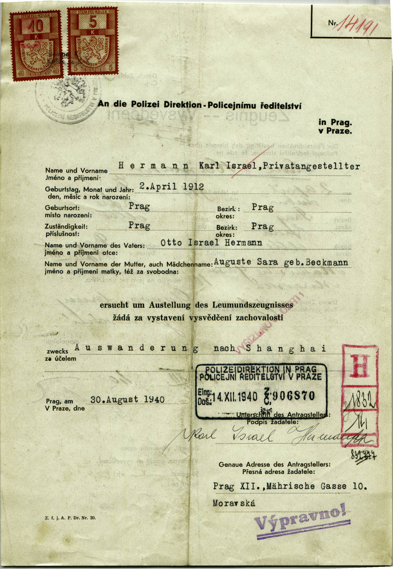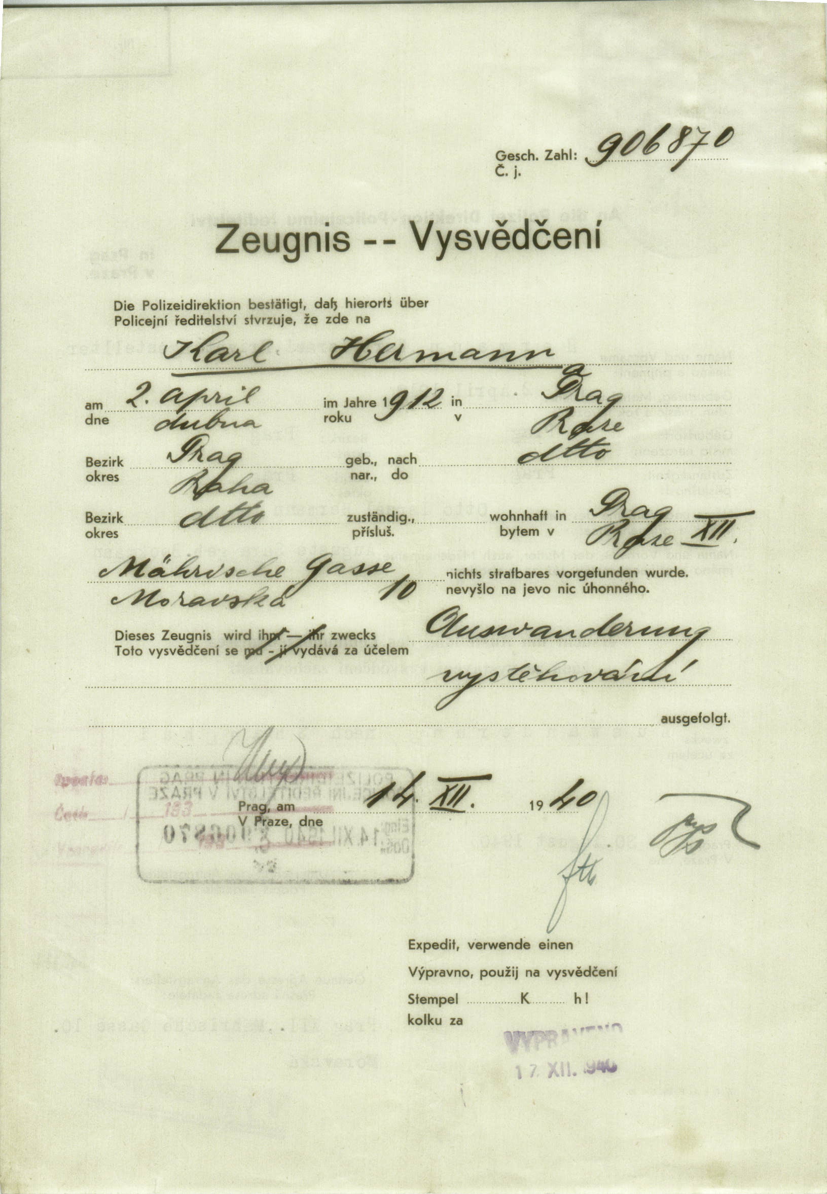 Hermann Karl: Vysvědčení zachovalosti