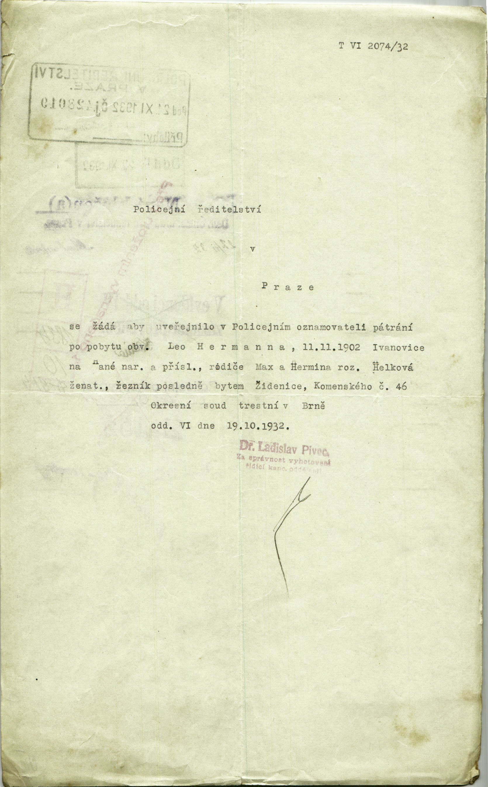 Hermann Leopold: Pátrání po pobytu