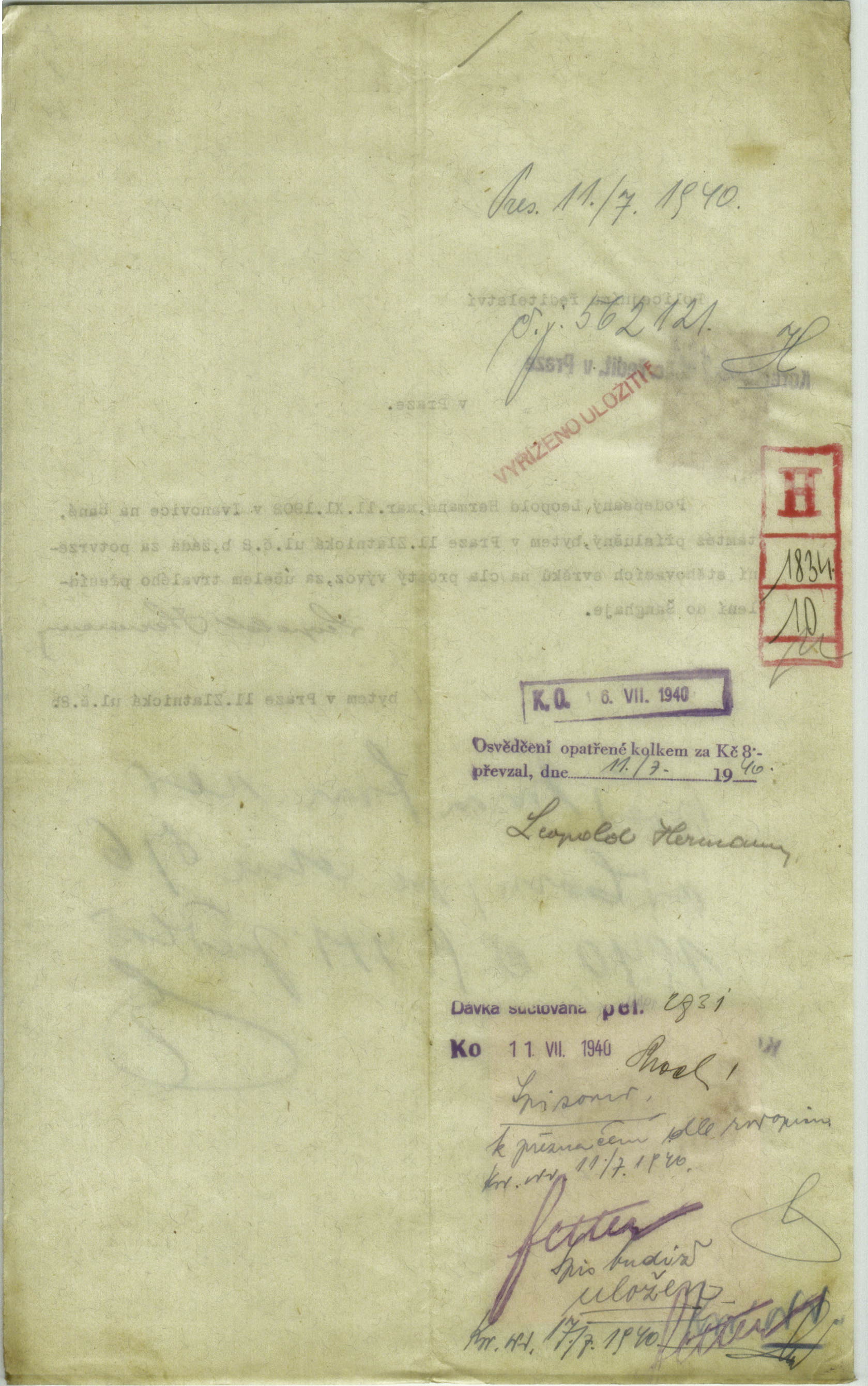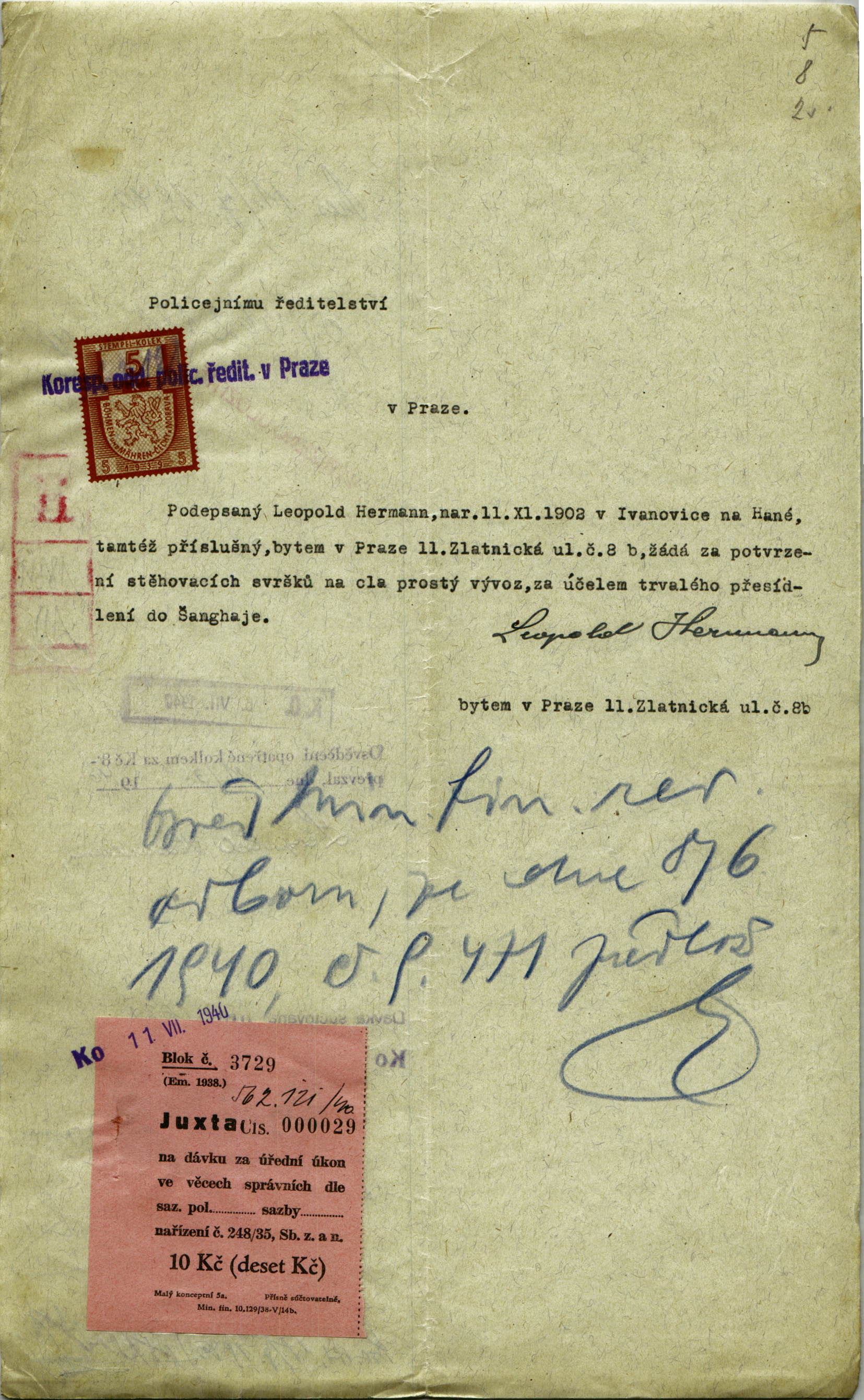 Hermann Leopold: Žádost o potvrzení seznamu stěhovacích svršků