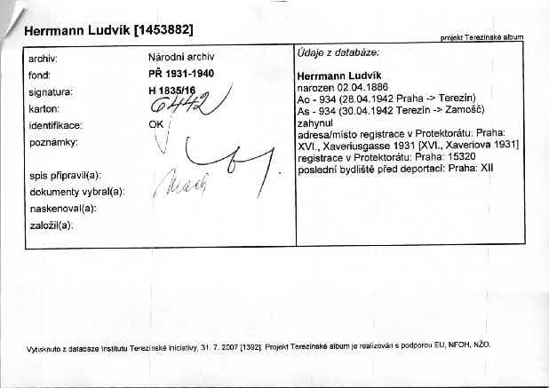 This database contains the names and fates of those who were deported from the territory of today’s Czech Republic, be it their homeland or may they have been deported to the Theresienstadt ghetto before from different european countries. Further, it contains basic information on those men, women and children, most of whom were Roma or Sinti, who died as prisoners of the so-called „Gypsy camp I“ Lety u Písku.