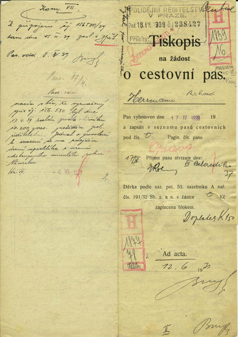 Herrmann Richard: Žádost o opravu v cestovním pase