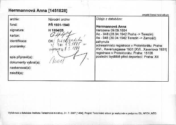 This database contains the names and fates of those who were deported from the territory of today’s Czech Republic, be it their homeland or may they have been deported to the Theresienstadt ghetto before from different european countries. Further, it contains basic information on those men, women and children, most of whom were Roma or Sinti, who died as prisoners of the so-called „Gypsy camp I“ Lety u Písku.