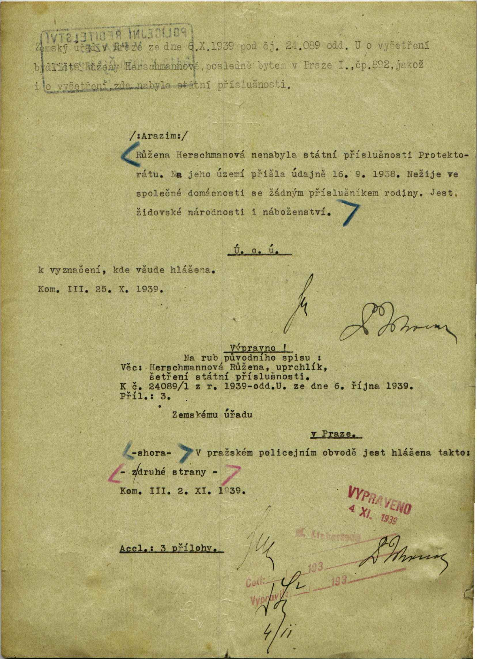 Herschmannová Růžena: Šetření o státní příslušnosti