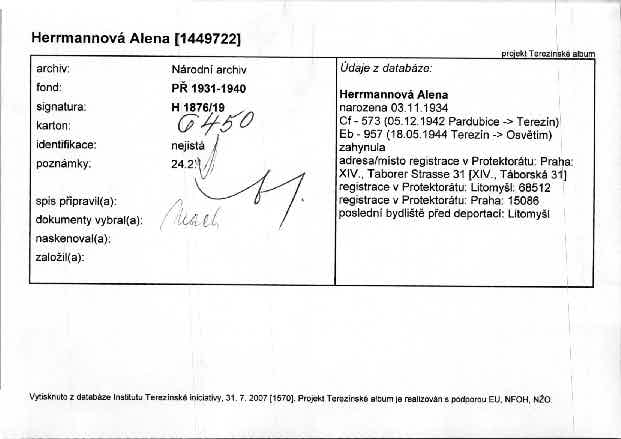 This database contains the names and fates of those who were deported from the territory of today’s Czech Republic, be it their homeland or may they have been deported to the Theresienstadt ghetto before from different european countries. Further, it contains basic information on those men, women and children, most of whom were Roma or Sinti, who died as prisoners of the so-called „Gypsy camp I“ Lety u Písku.