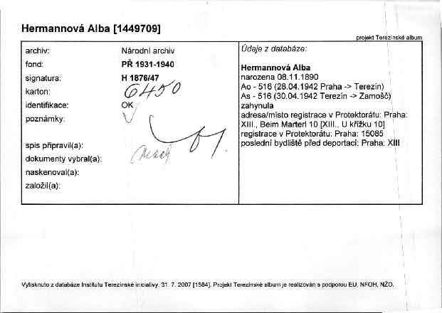 This database contains the names and fates of those who were deported from the territory of today’s Czech Republic, be it their homeland or may they have been deported to the Theresienstadt ghetto before from different european countries. Further, it contains basic information on those men, women and children, most of whom were Roma or Sinti, who died as prisoners of the so-called „Gypsy camp I“ Lety u Písku.