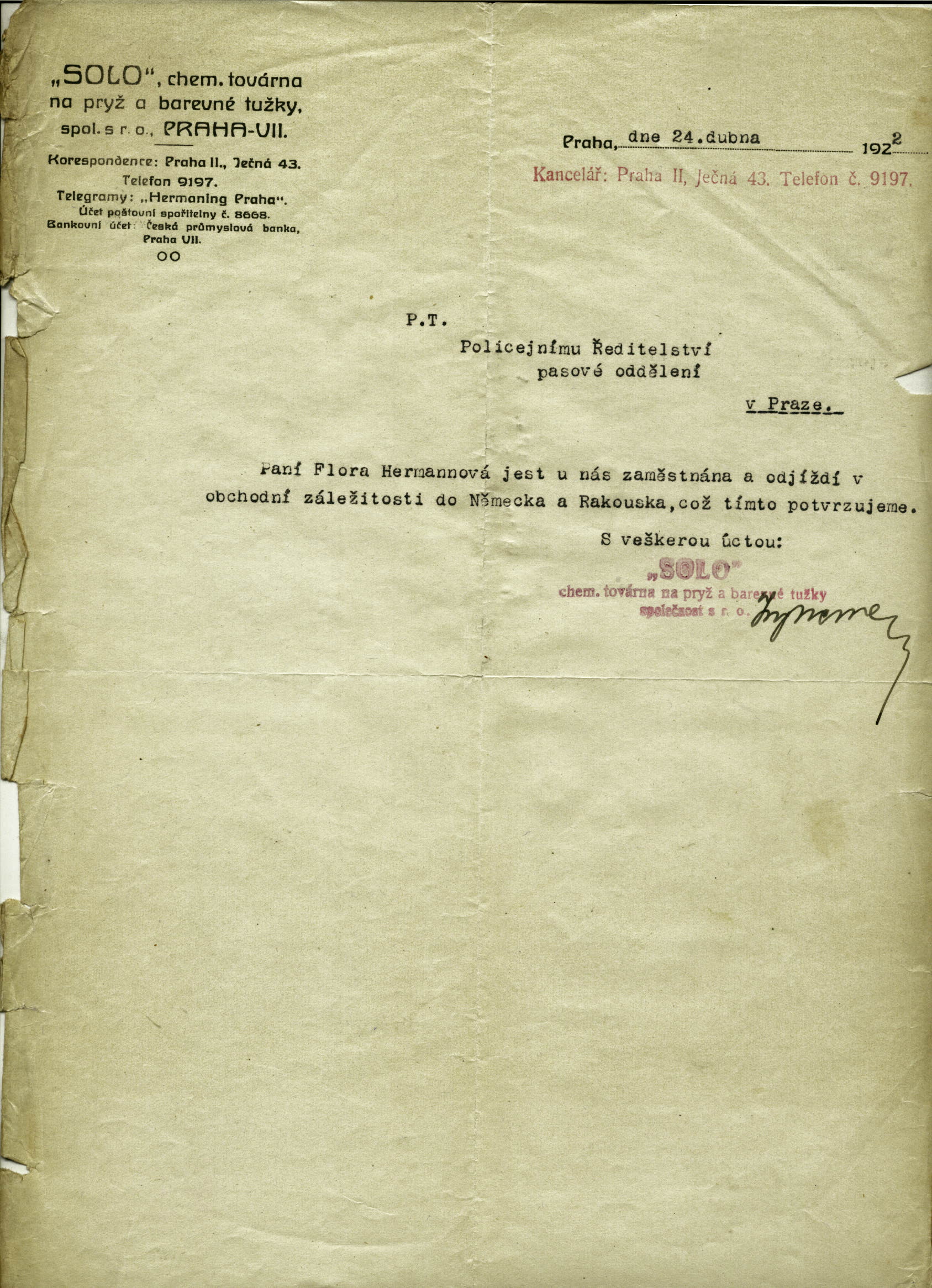Herrmannová Flora: Potvrzení o zaměstnání