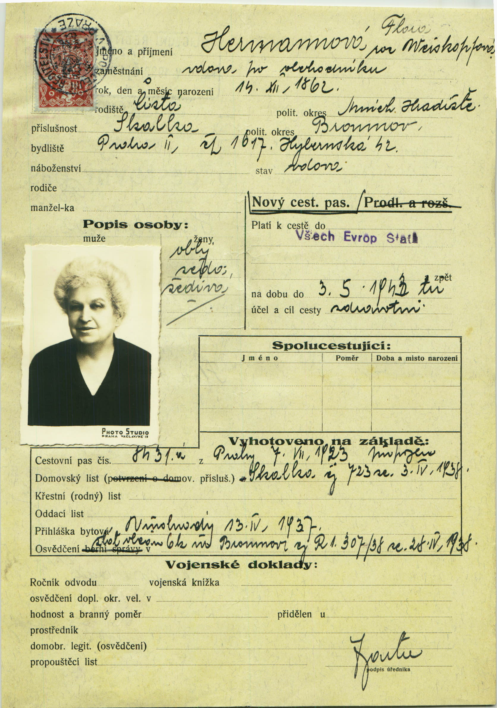 Herrmannová Flora: Žádost o vydání cestovního pasu
