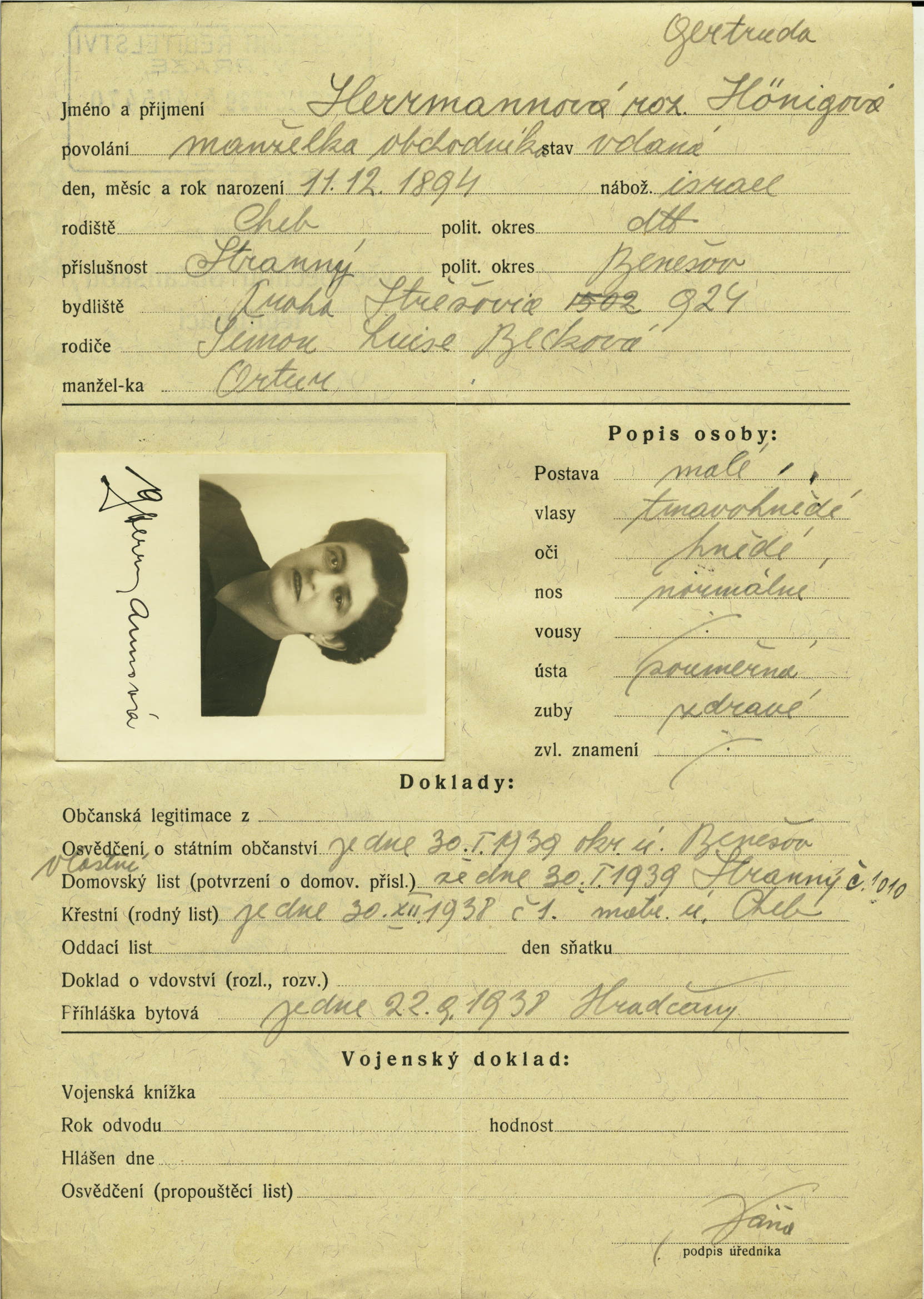 Herrmannová Gerta: Žádost o vydání občanské legitimace