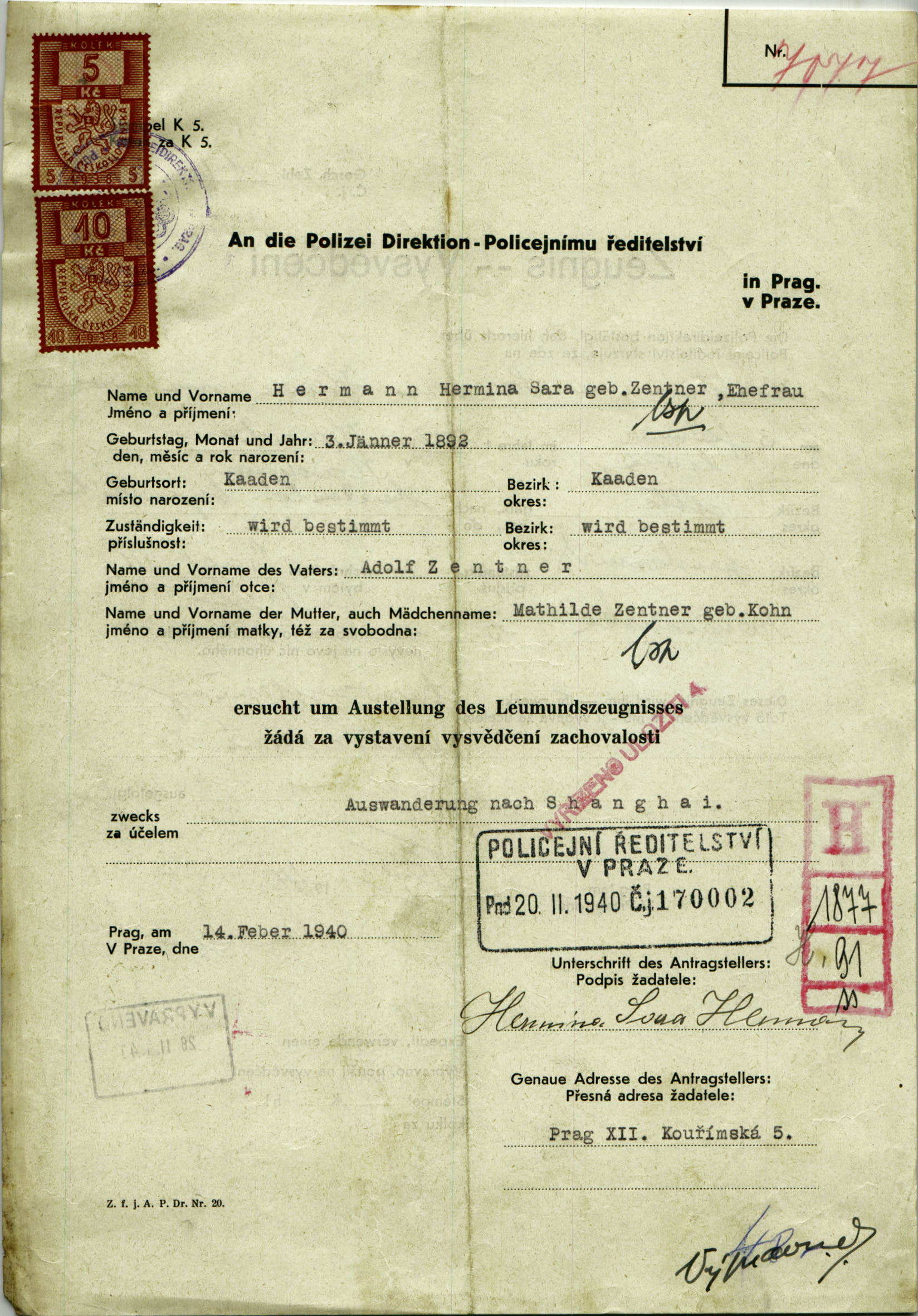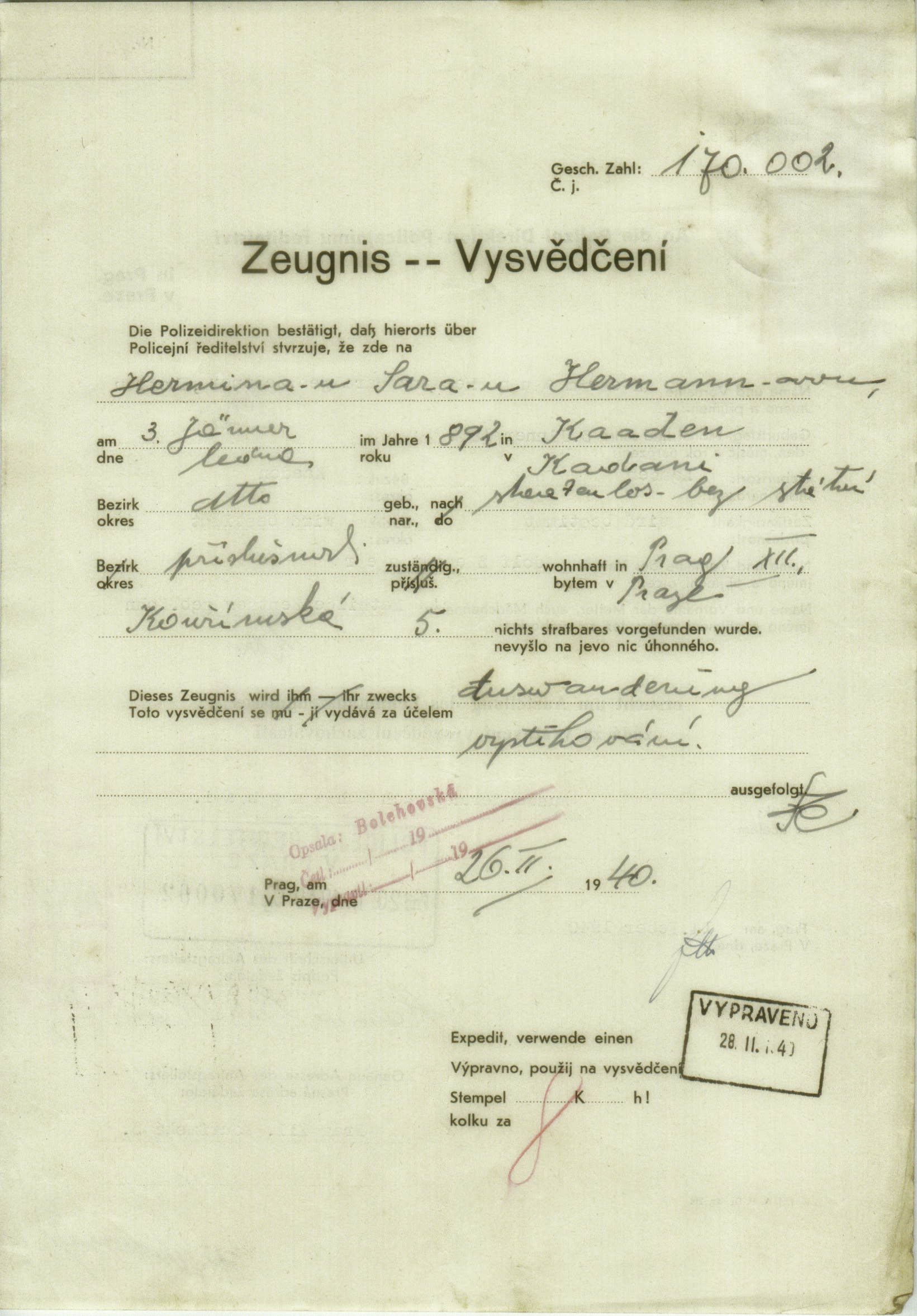 Herrmannová Hermína: Vysvědčení zachovalosti