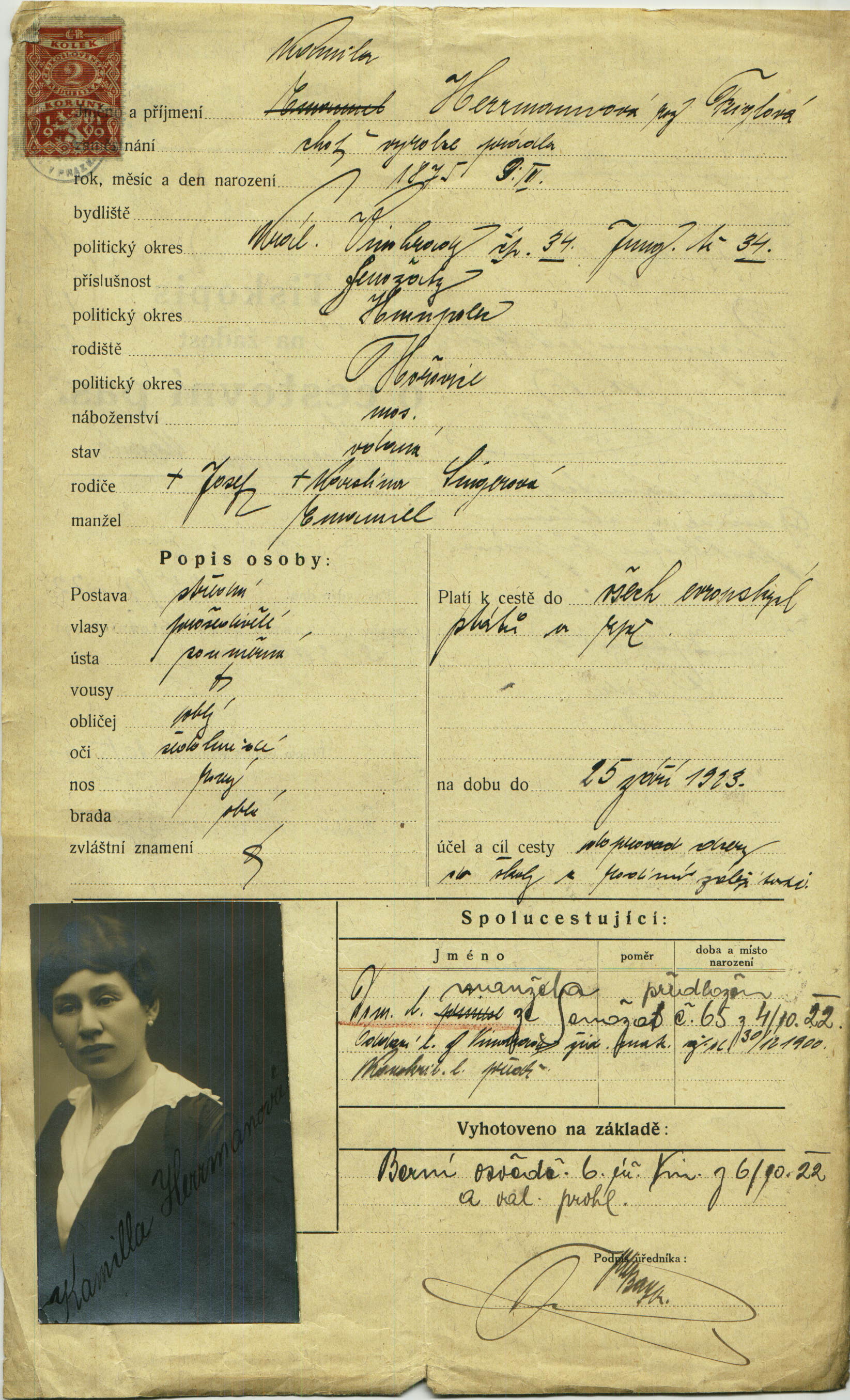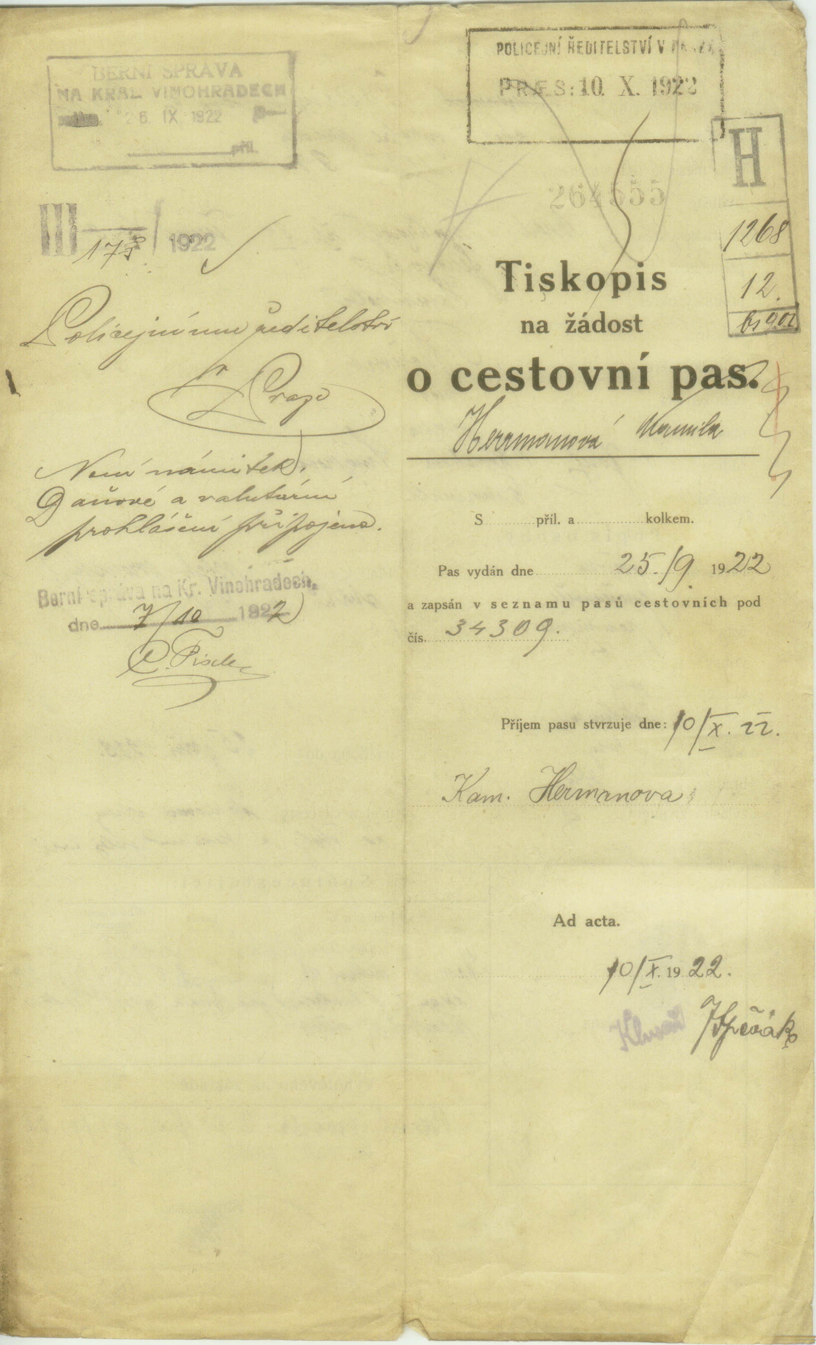Herrmannová Kamila: Žádost o vydání cestovního pasu