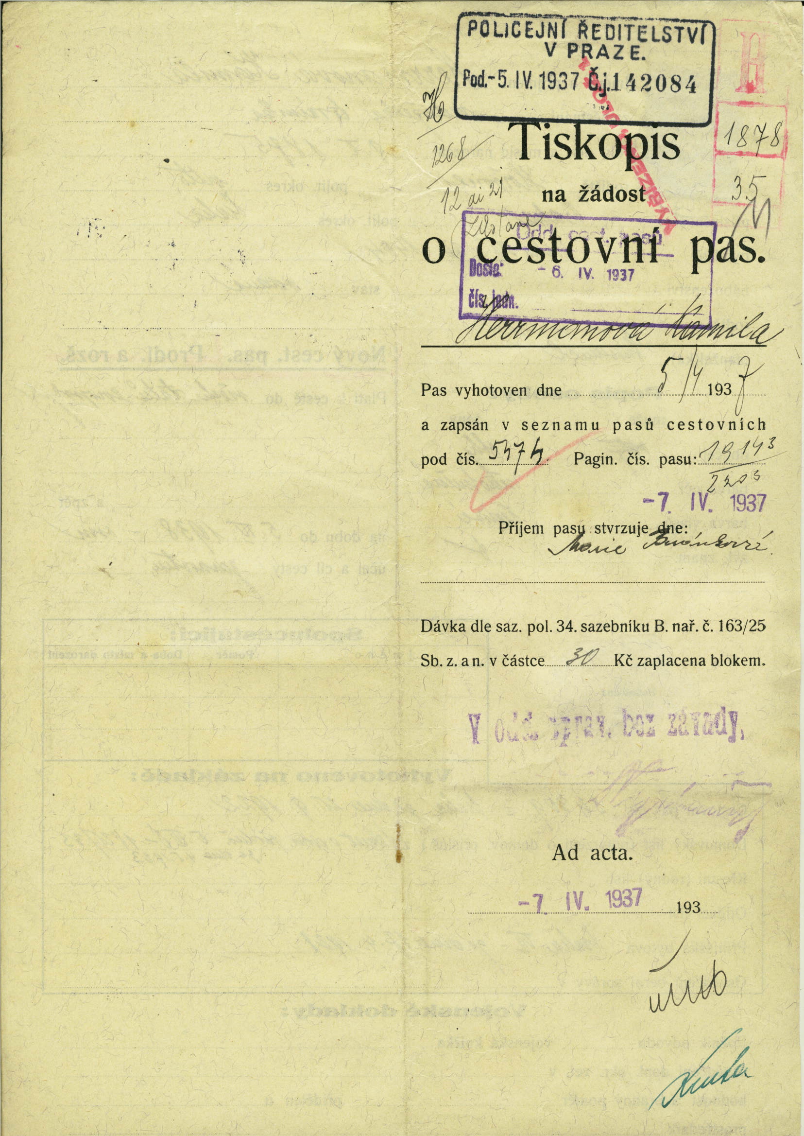 Herrmannová Kamila: Žádost o vydání cestovního pasu