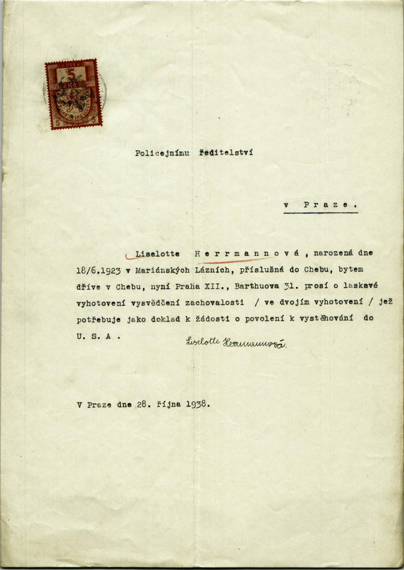 Herrmannová Liselota: Žádost o vystavení vysvědčení zachovalosti