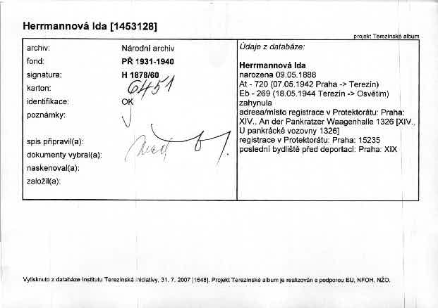 This database contains the names and fates of those who were deported from the territory of today’s Czech Republic, be it their homeland or may they have been deported to the Theresienstadt ghetto before from different european countries. Further, it contains basic information on those men, women and children, most of whom were Roma or Sinti, who died as prisoners of the so-called „Gypsy camp I“ Lety u Písku.