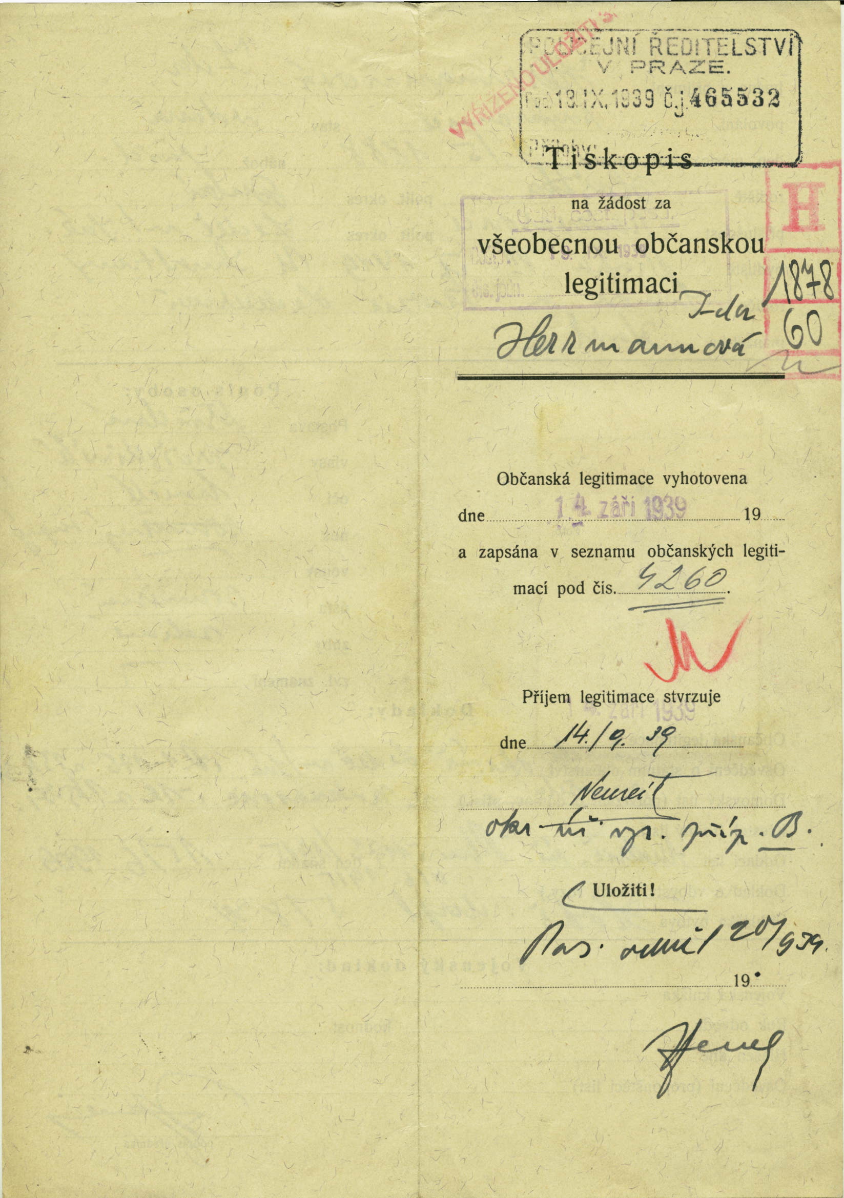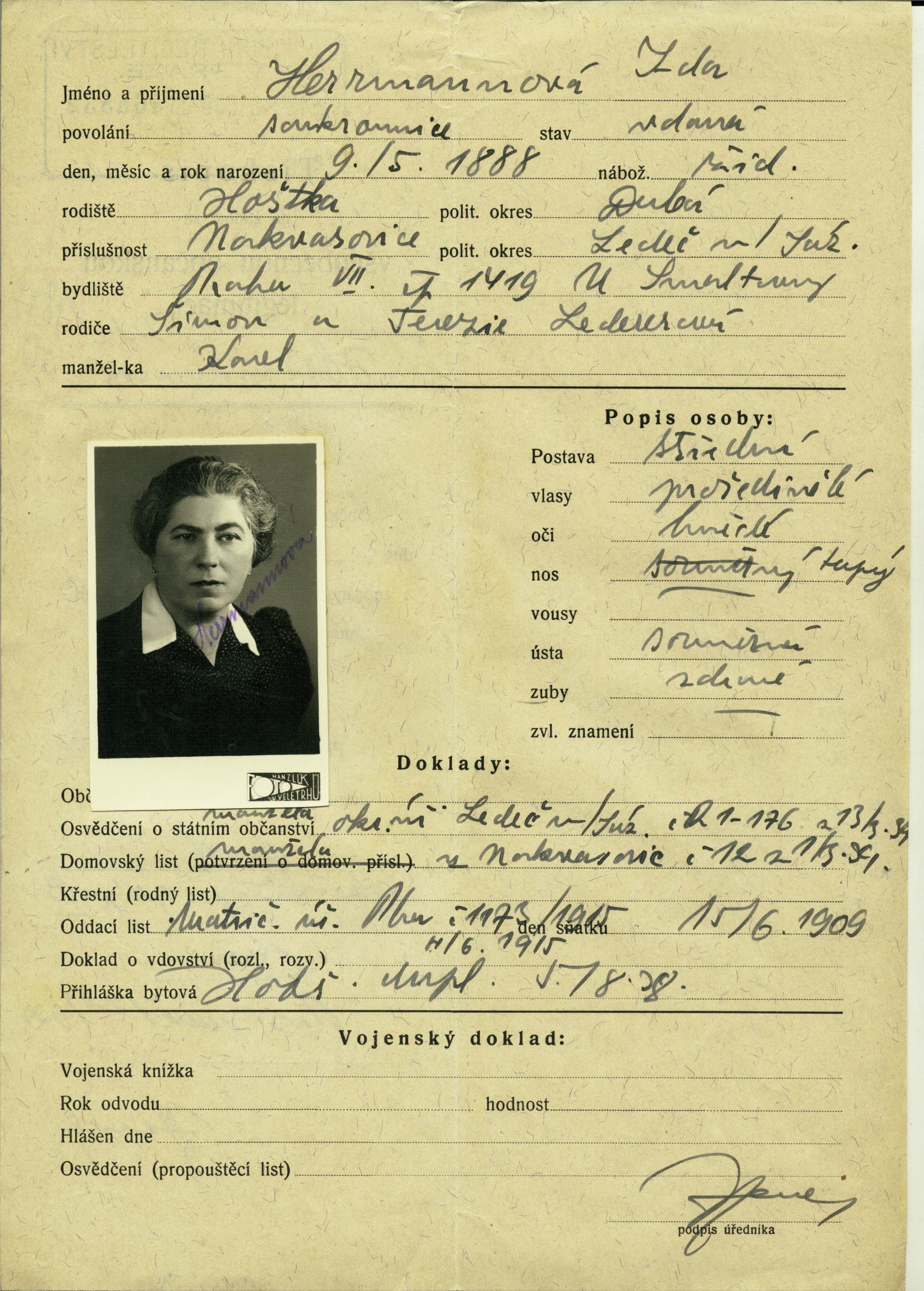 Herrmannová Ida: Žádost o vydání občanské legitimace