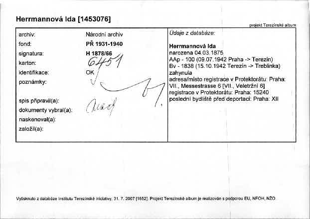 This database contains the names and fates of those who were deported from the territory of today’s Czech Republic, be it their homeland or may they have been deported to the Theresienstadt ghetto before from different european countries. Further, it contains basic information on those men, women and children, most of whom were Roma or Sinti, who died as prisoners of the so-called „Gypsy camp I“ Lety u Písku.