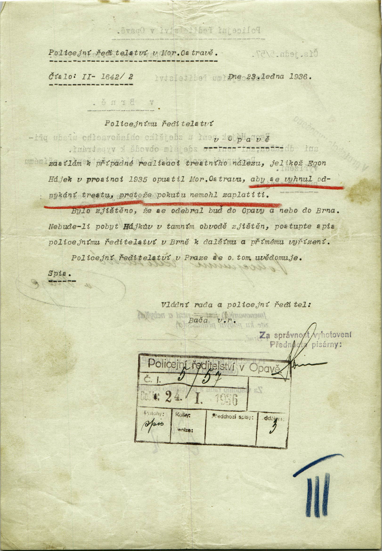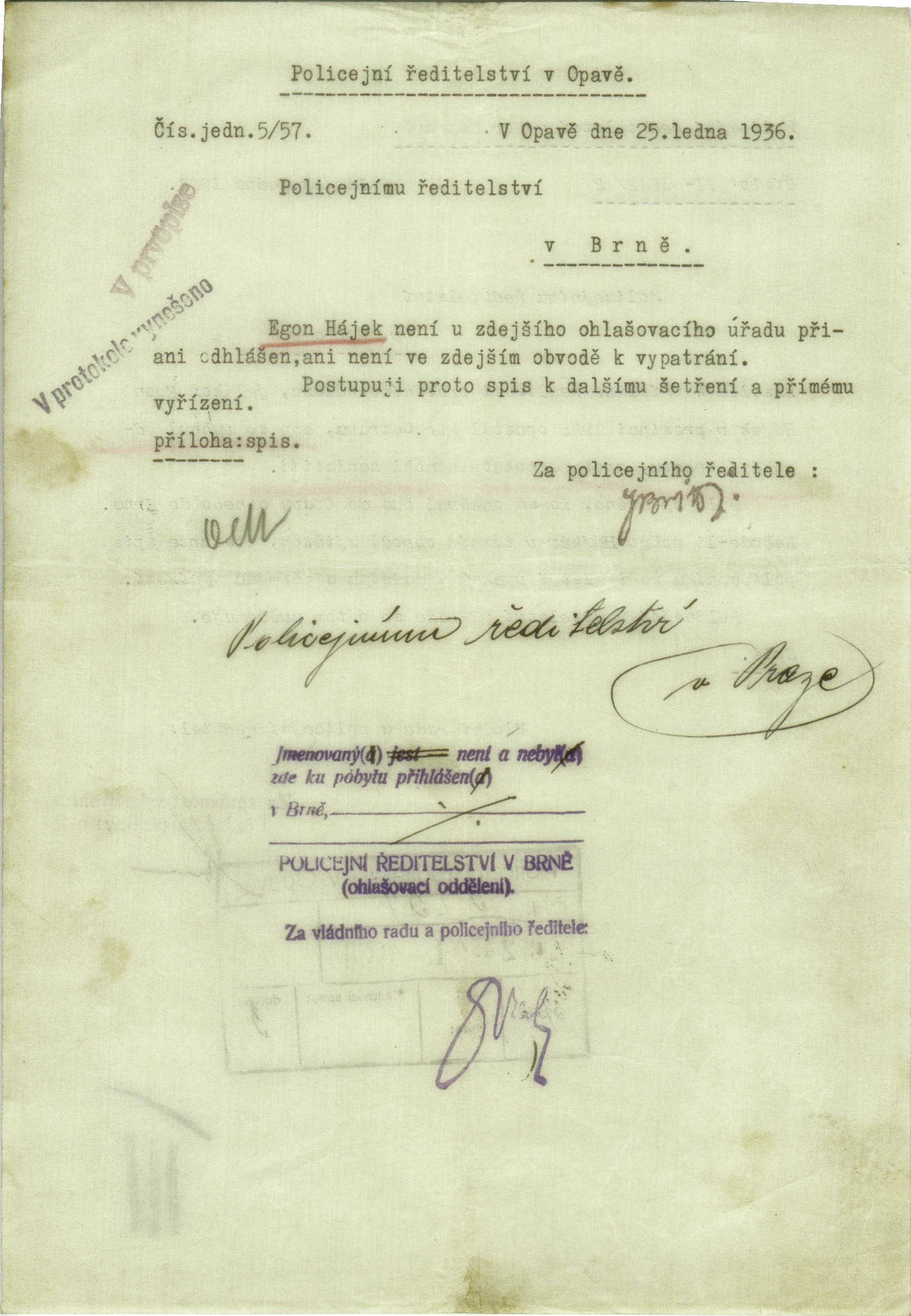 Hájek Egon: Šetření o pobytu