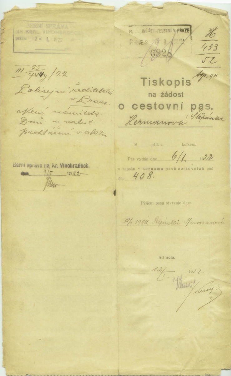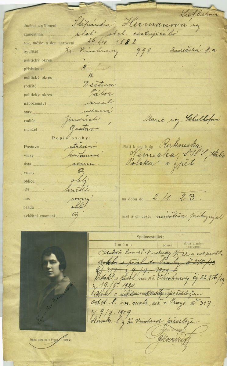 Herrmannová Štěpánka: Žádost o vydání cestovního pasu