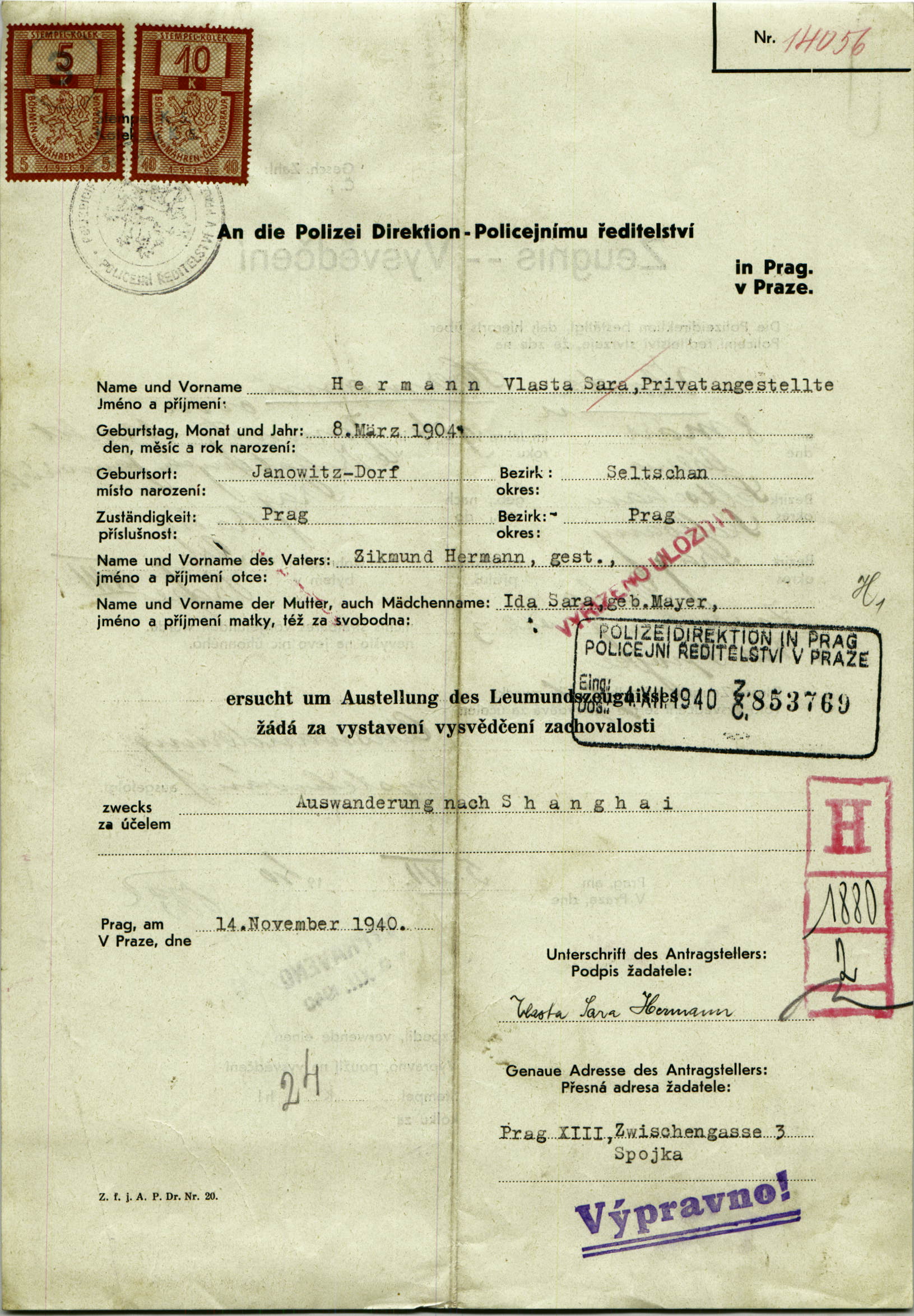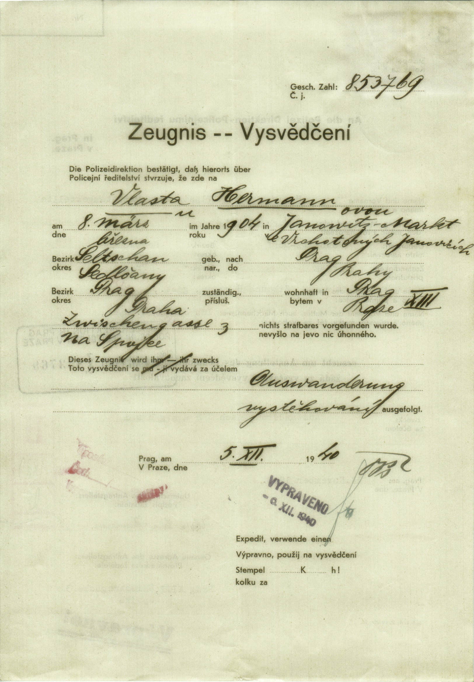 Hermannová Vlasta: Vysvědčení zachovalosti