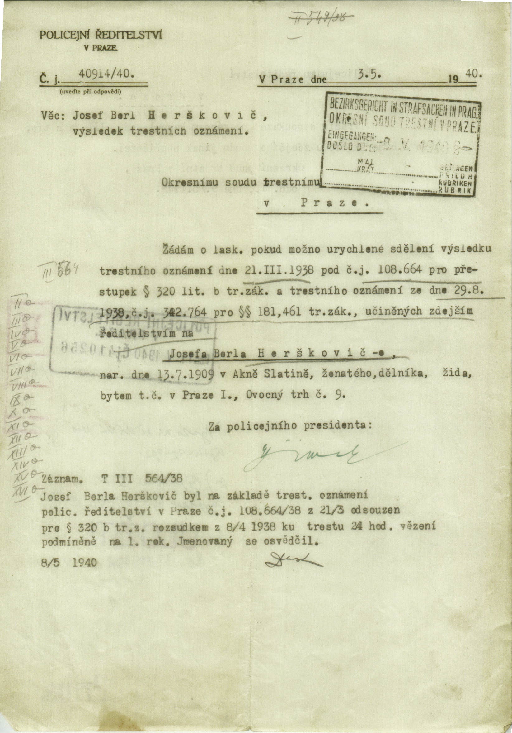 Herskovic Josef: Trestní řízení