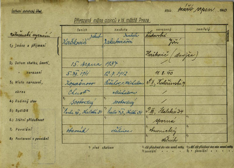 This database contains the names and fates of those who were deported from the territory of today’s Czech Republic, be it their homeland or may they have been deported to the Theresienstadt ghetto before from different european countries. Further, it contains basic information on those men, women and children, most of whom were Roma or Sinti, who died as prisoners of the so-called „Gypsy camp I“ Lety u Písku.