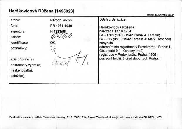 Herškovicová Růžena: NEZPRACOVÁNO