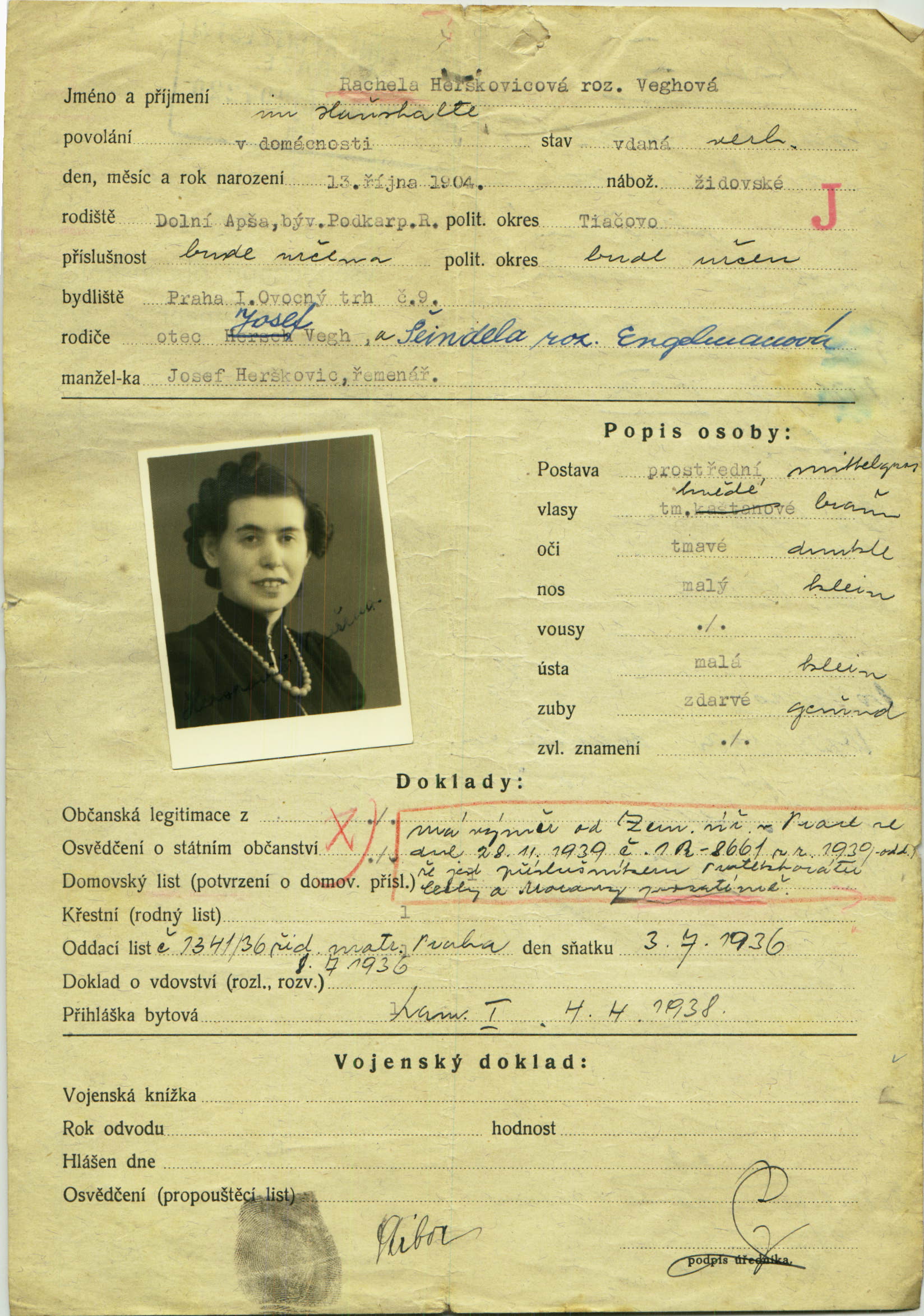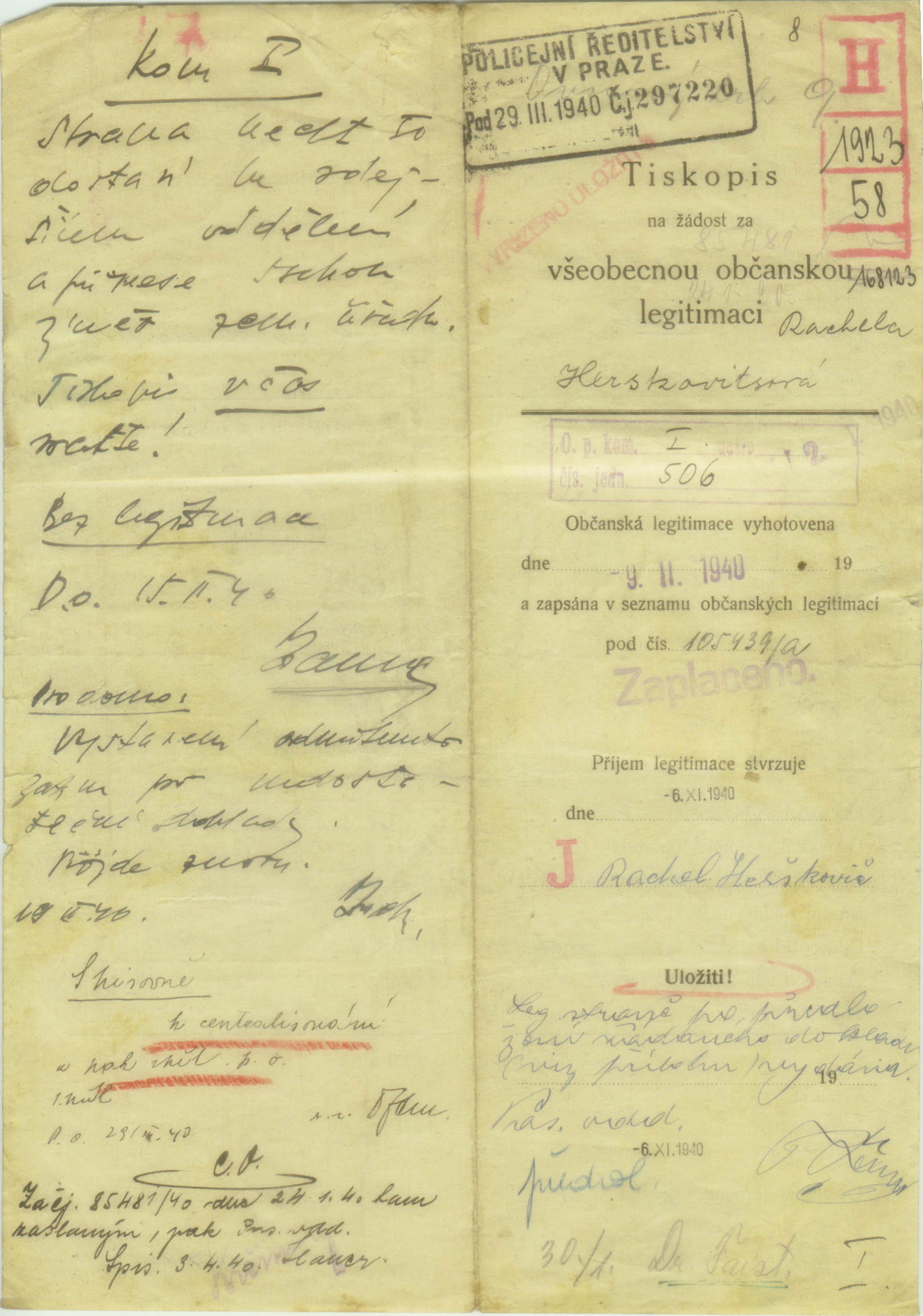 Herškovicová Růžena: Žádost o vydání občanské legitimace