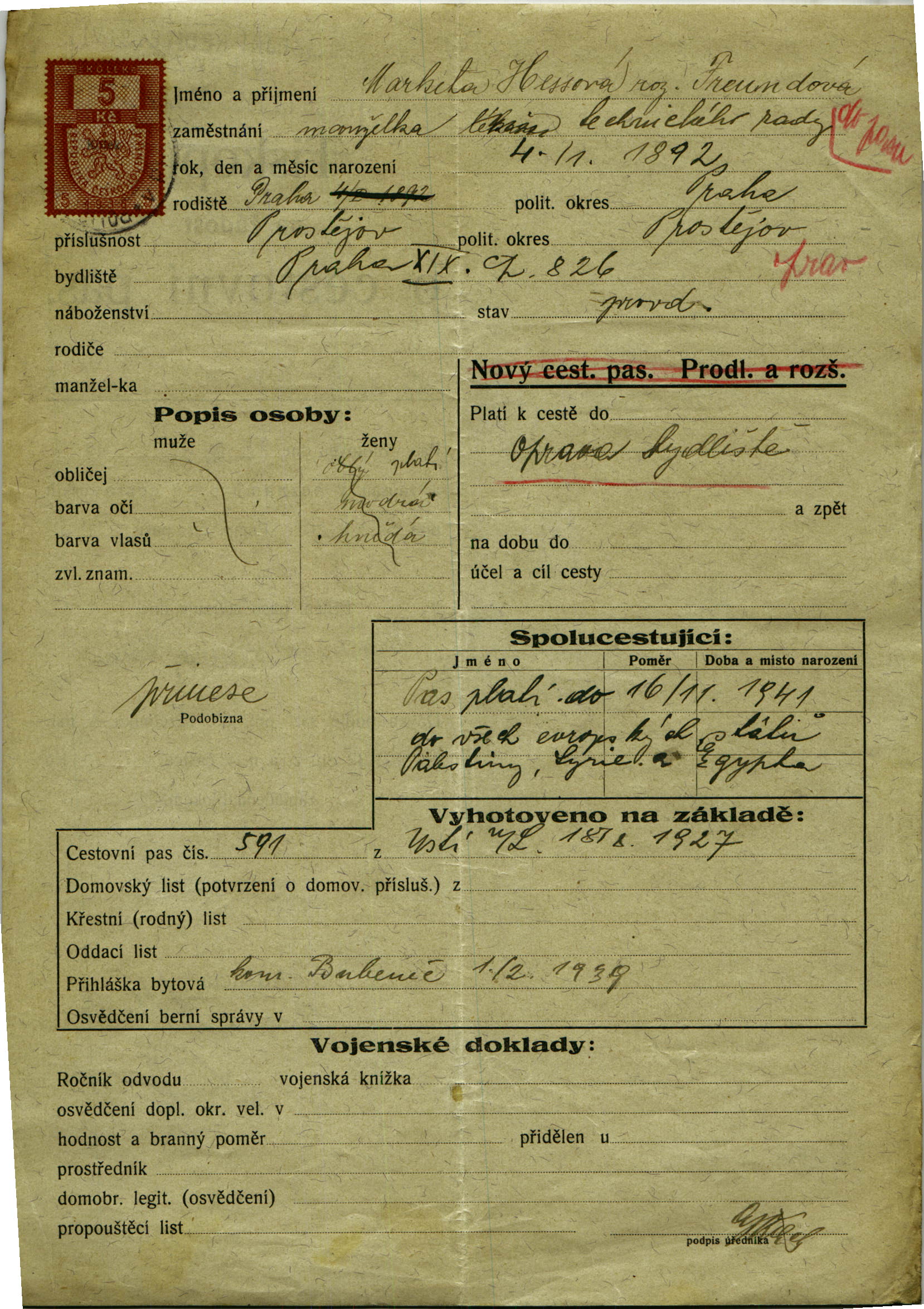 Hessová Margareta: Žádost o opravu v cestovním pase