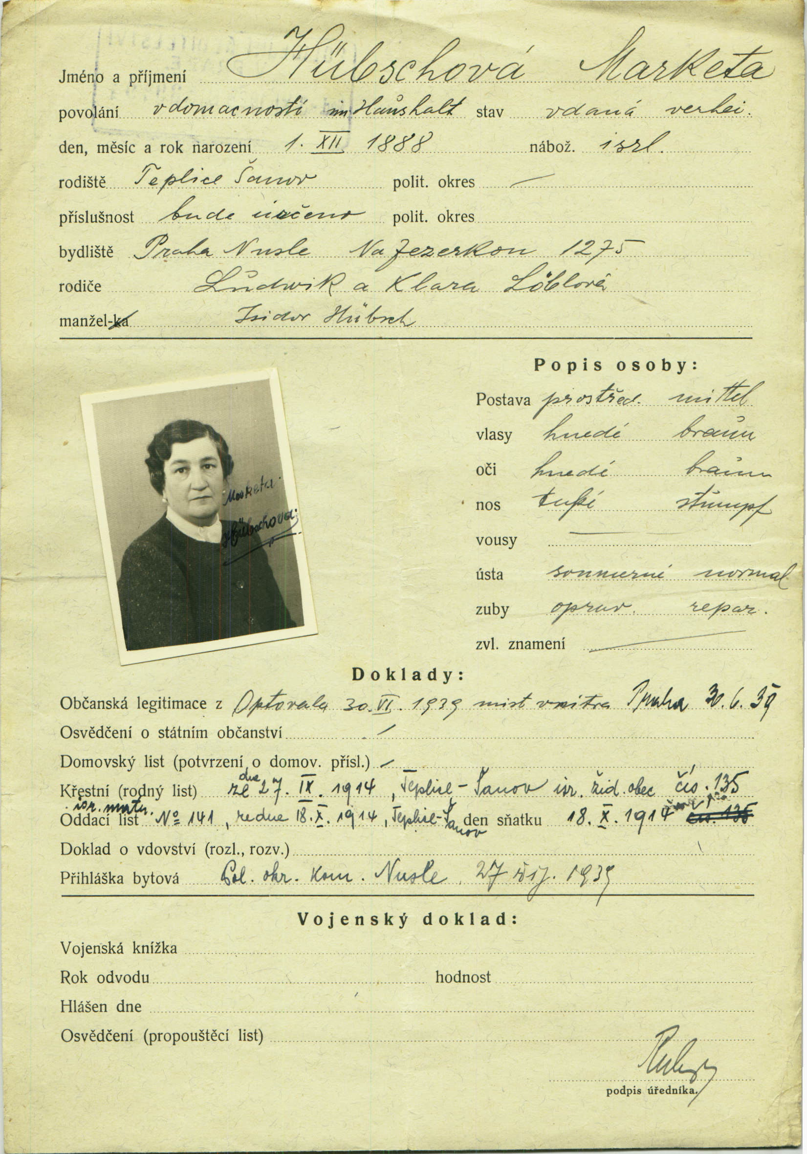 Hübschová Margareta: Žádost o vydání občanské legitimace