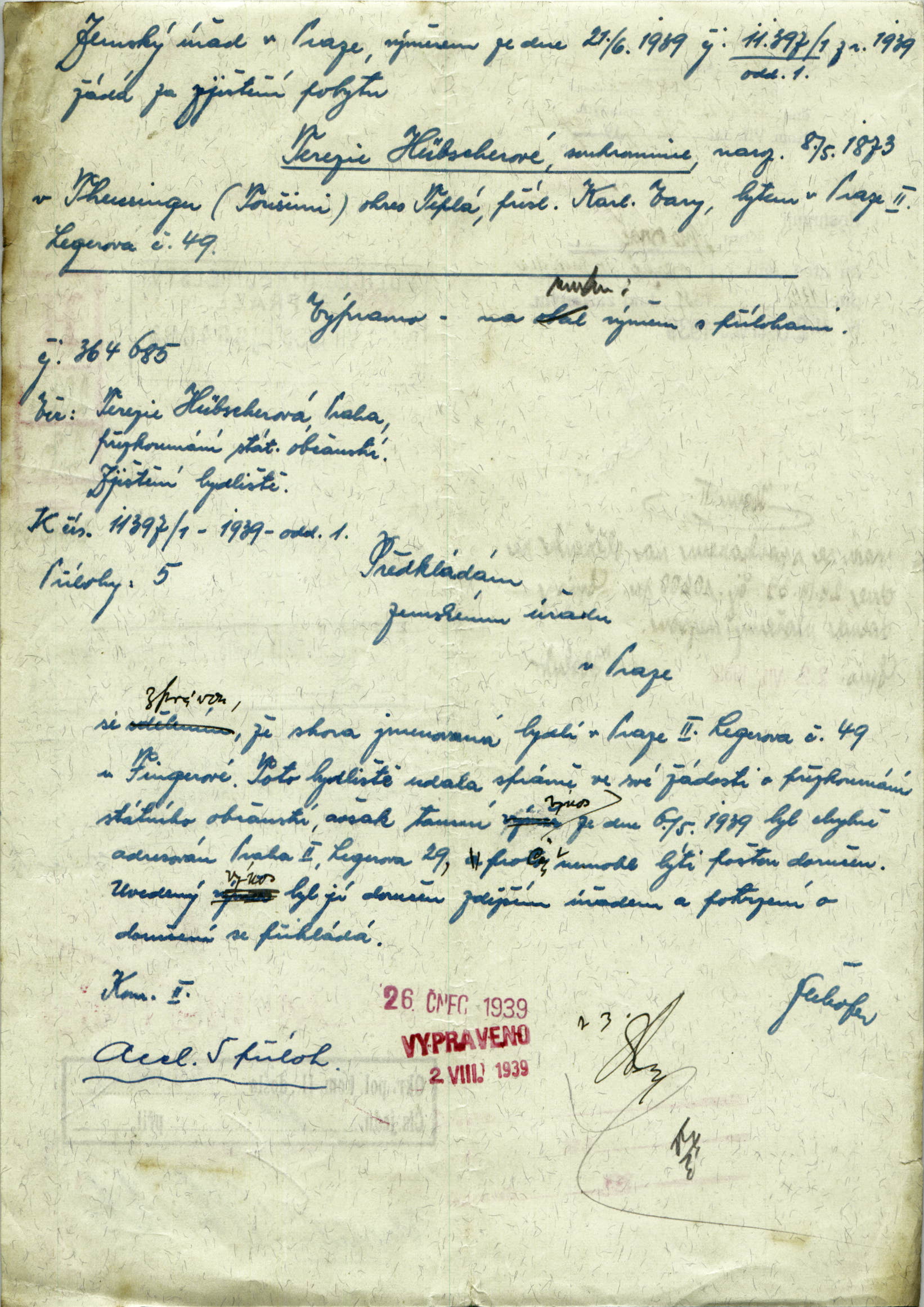 Hübscherová Tereza: Šetření o pobytu