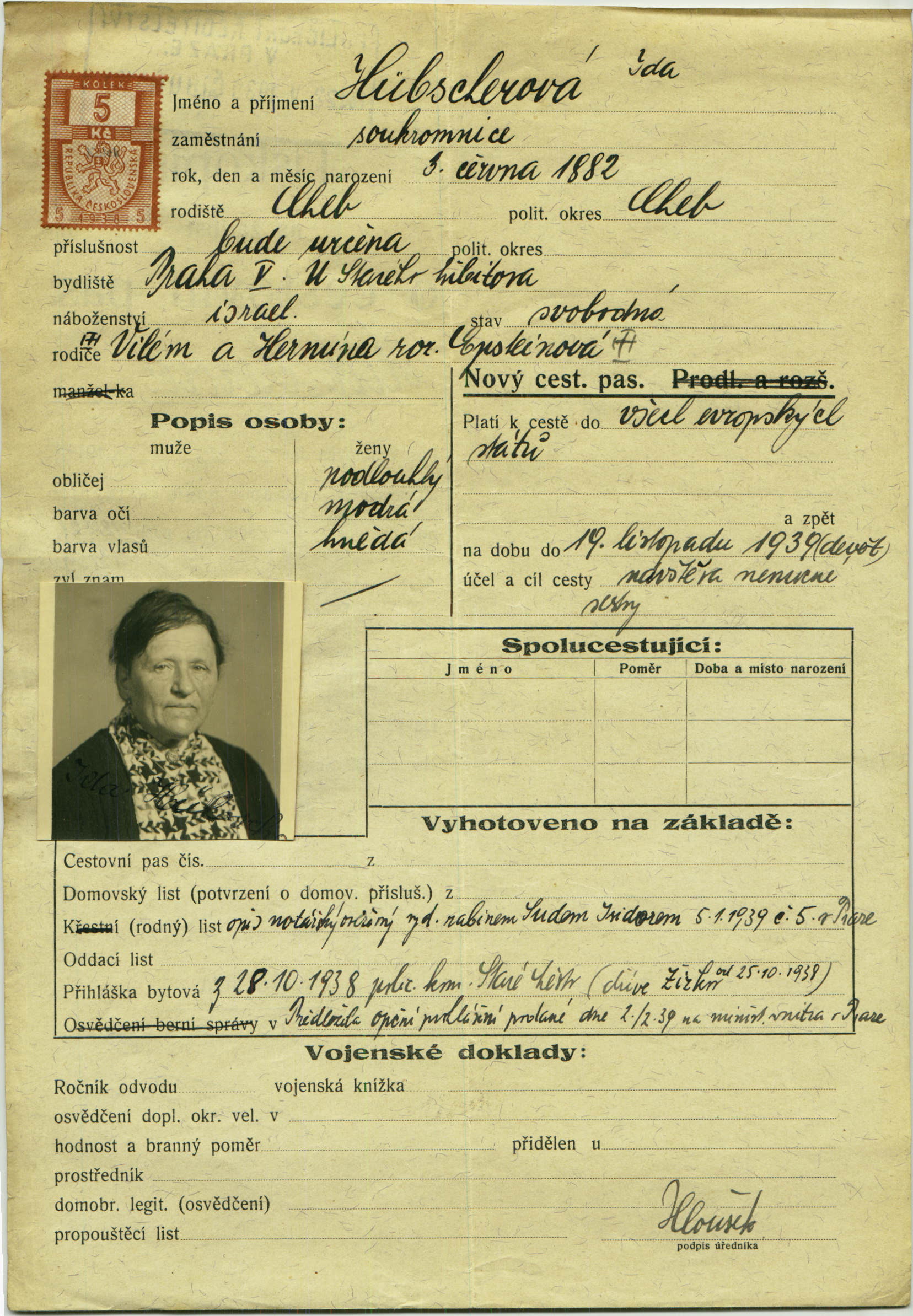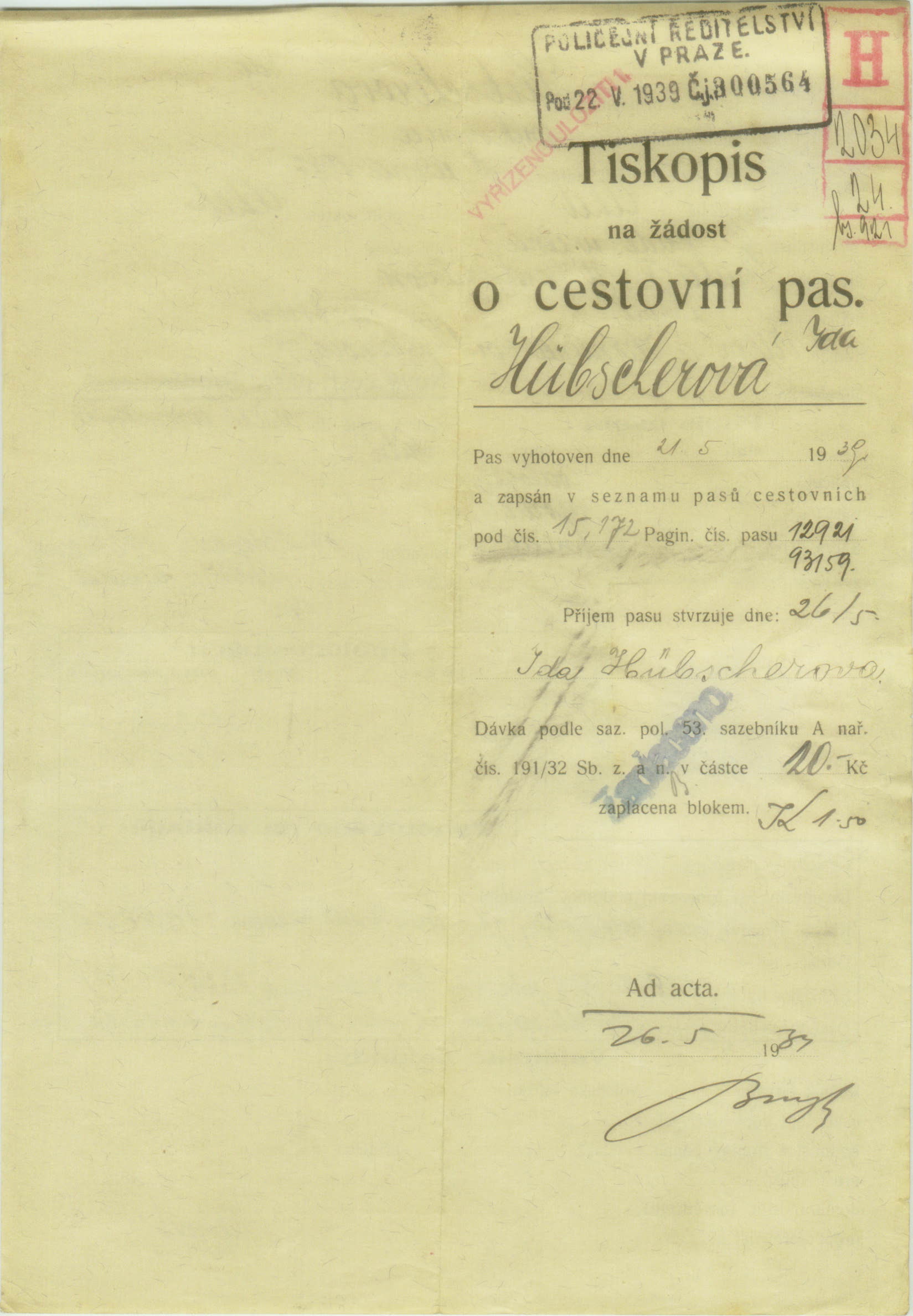 Hübscherová Ida: Žádost o vydání cestovního pasu