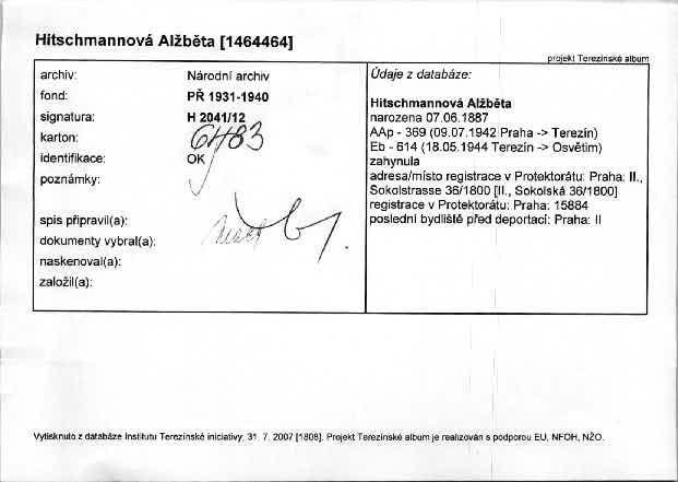 Hitschmannová Alžběta: NEZPRACOVÁNO