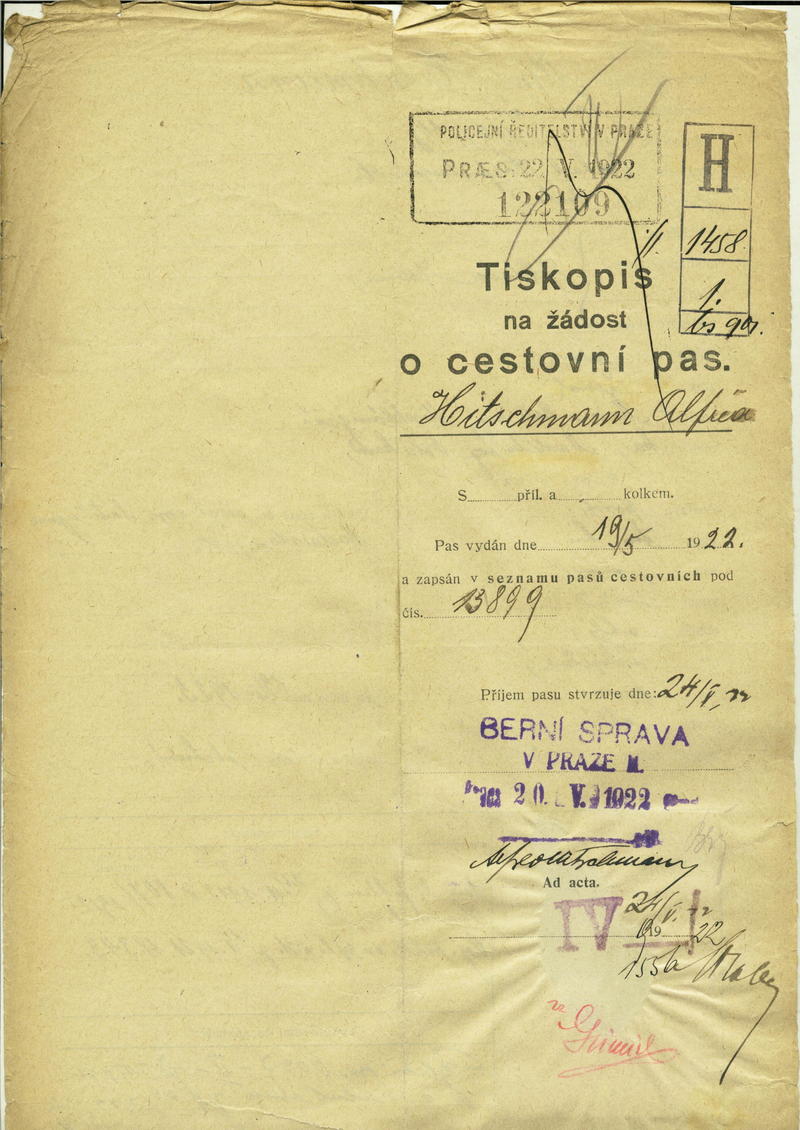 National archives Prague > Police Directorate Prague > 1931-1940 > H > Hitschmann Alfred