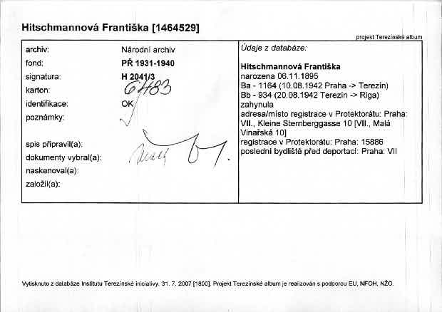Hitschmannová Františka: NEZPRACOVÁNO