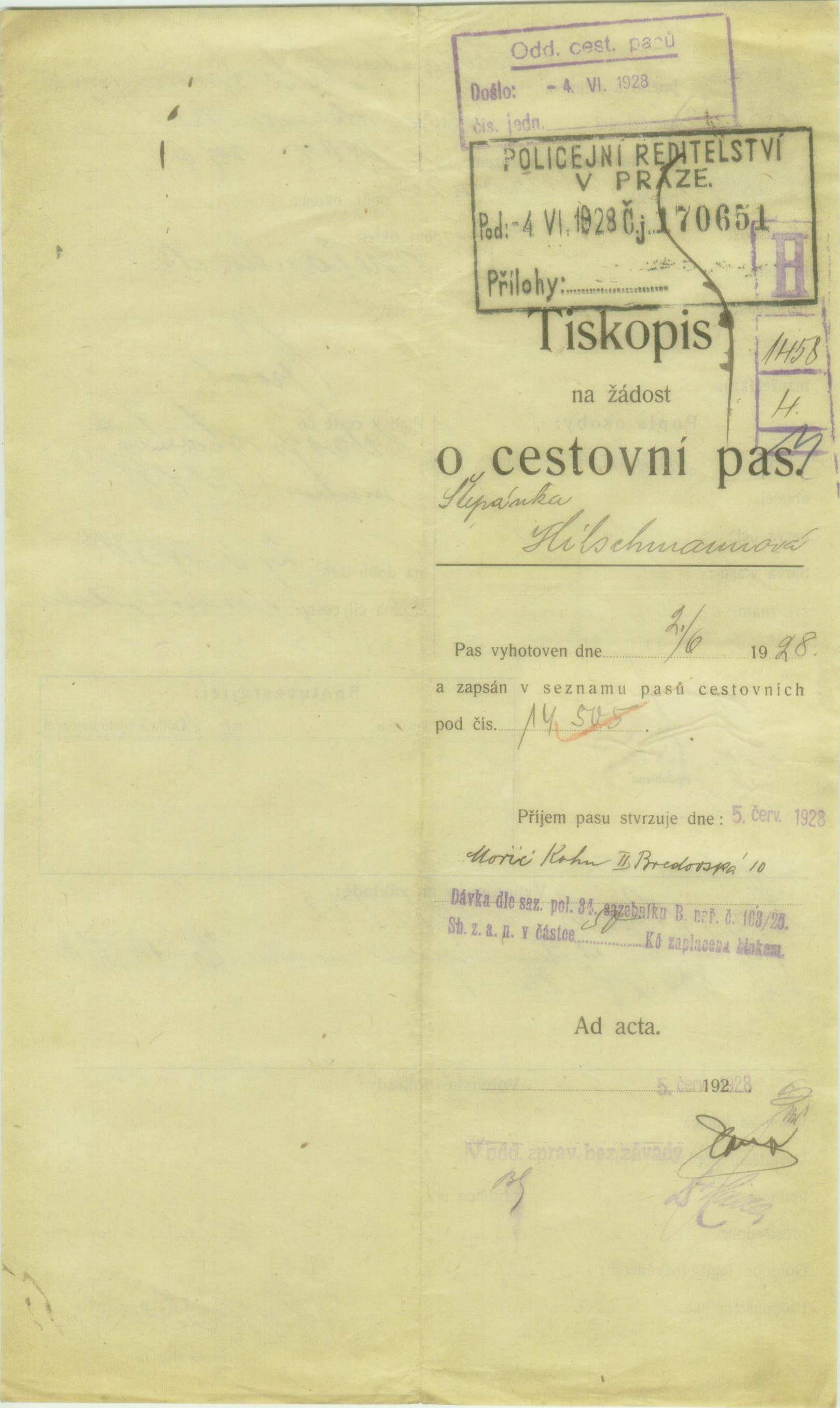 Hitschmannová Štěpánka: Žádost o prodloužení cestovního pasu