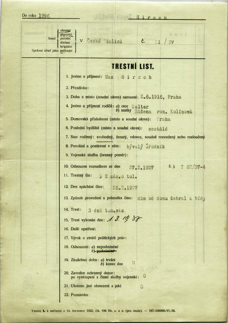 National archives Prague > Police Directorate Prague > 1931-1940 > H > Hirsch Max