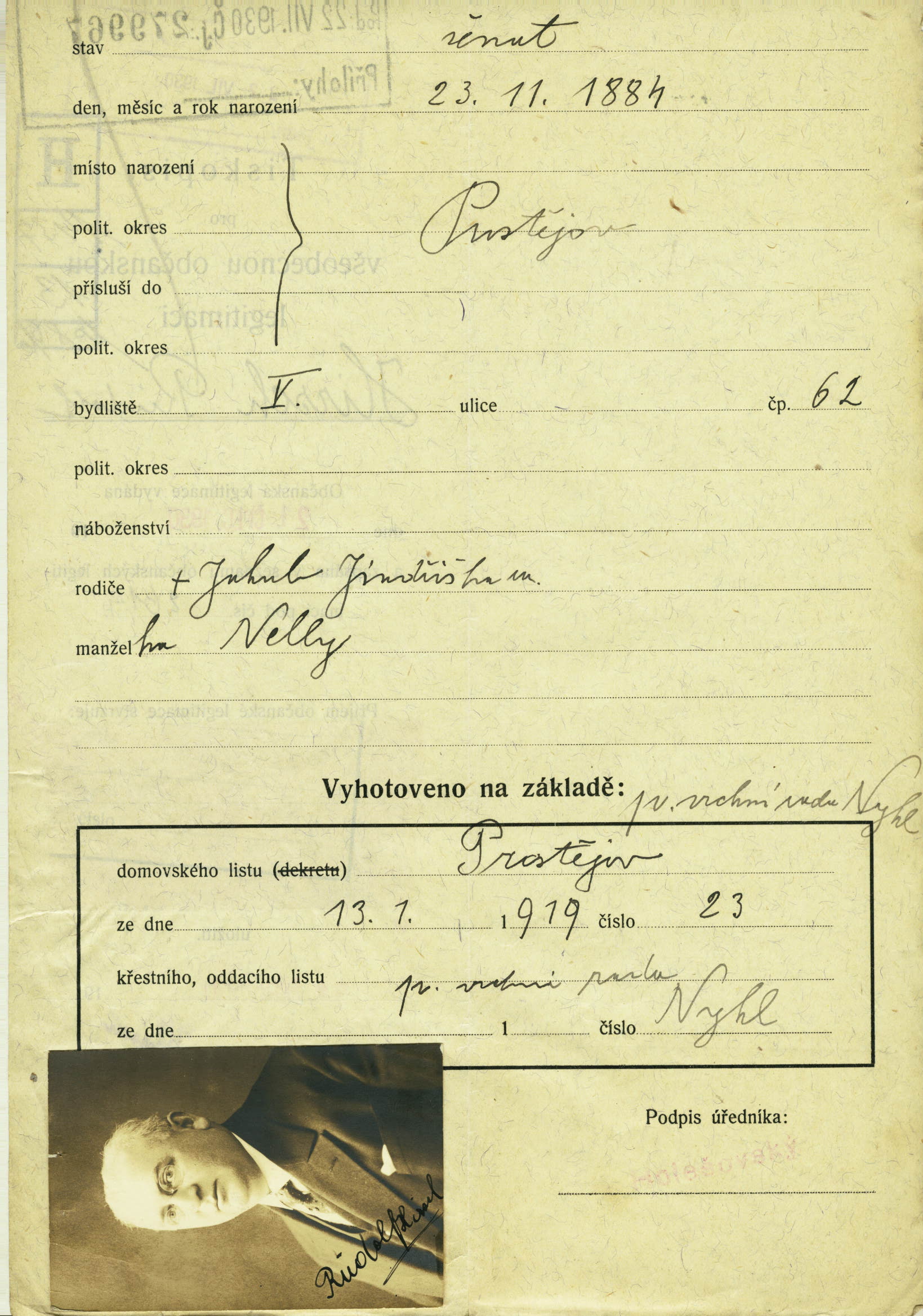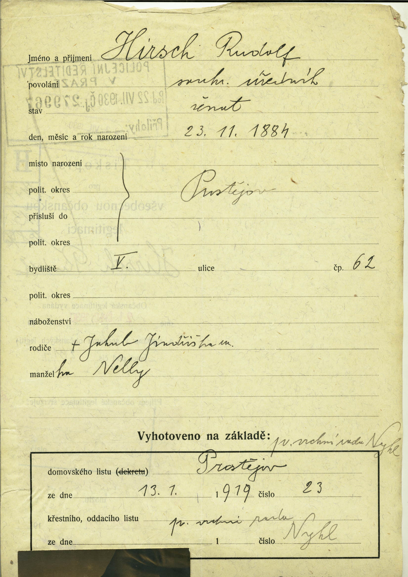 Hirsch Rudolf: Žádost o vydání cestovního pasu