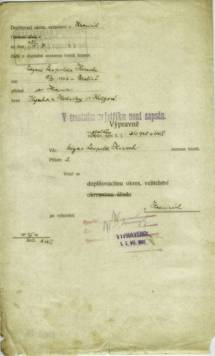 Hirsch Edgar: NEZPRACOVÁNO