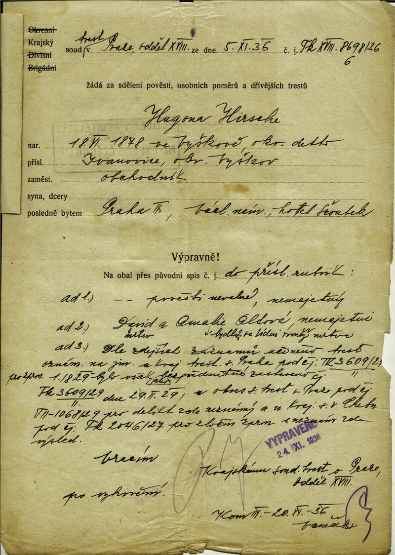 National archives Prague > Police Directorate Prague > 1931-1940 > H > Hirsch Hugo
