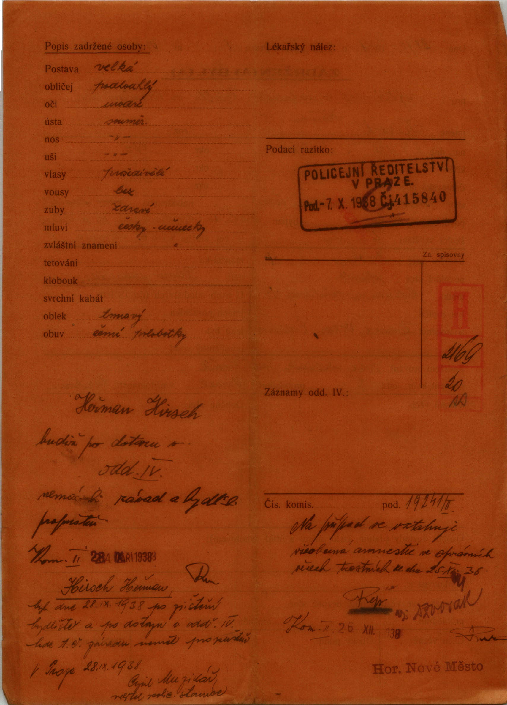 Hirsch Hermann: Protokol o zadržení
