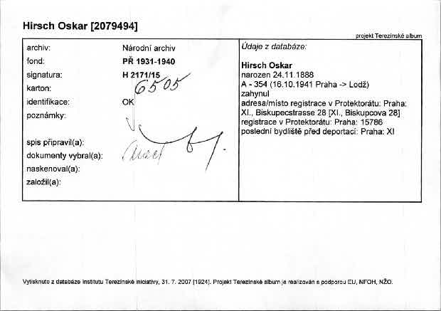 This database contains the names and fates of those who were deported from the territory of today’s Czech Republic, be it their homeland or may they have been deported to the Theresienstadt ghetto before from different european countries. Further, it contains basic information on those men, women and children, most of whom were Roma or Sinti, who died as prisoners of the so-called „Gypsy camp I“ Lety u Písku.