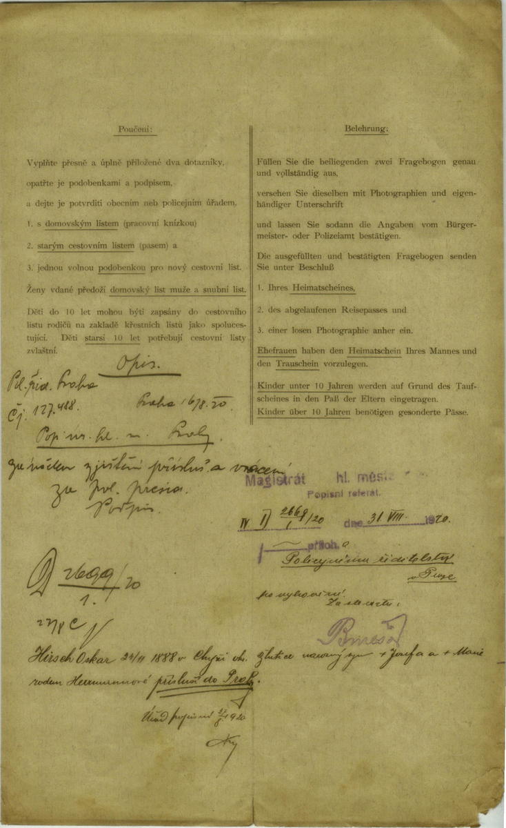 National archives Prague > Police Directorate Prague > 1931-1940 > H > Hirsch Oskar