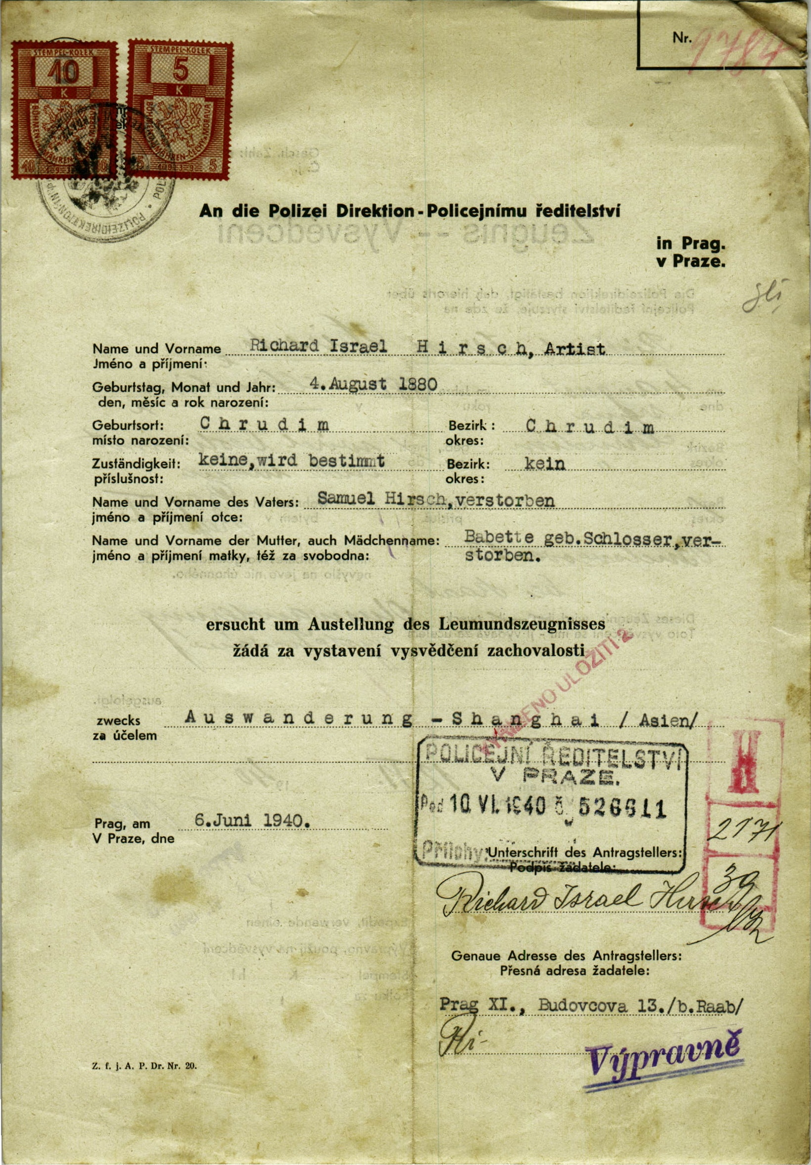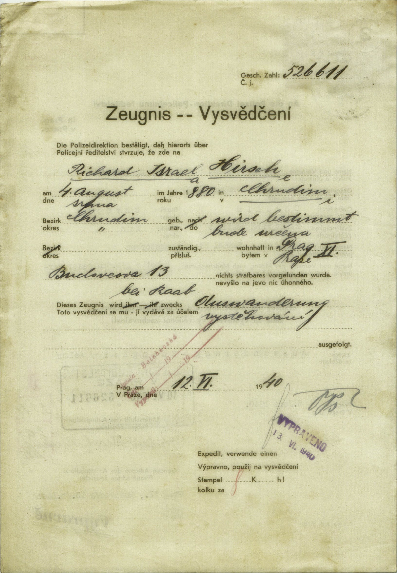 Hirsch Richard: Vysvědčení zachovalosti