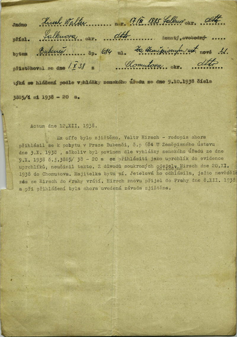 National archives Prague > Police Directorate Prague > 1931-1940 > H > Hirsch Valtr