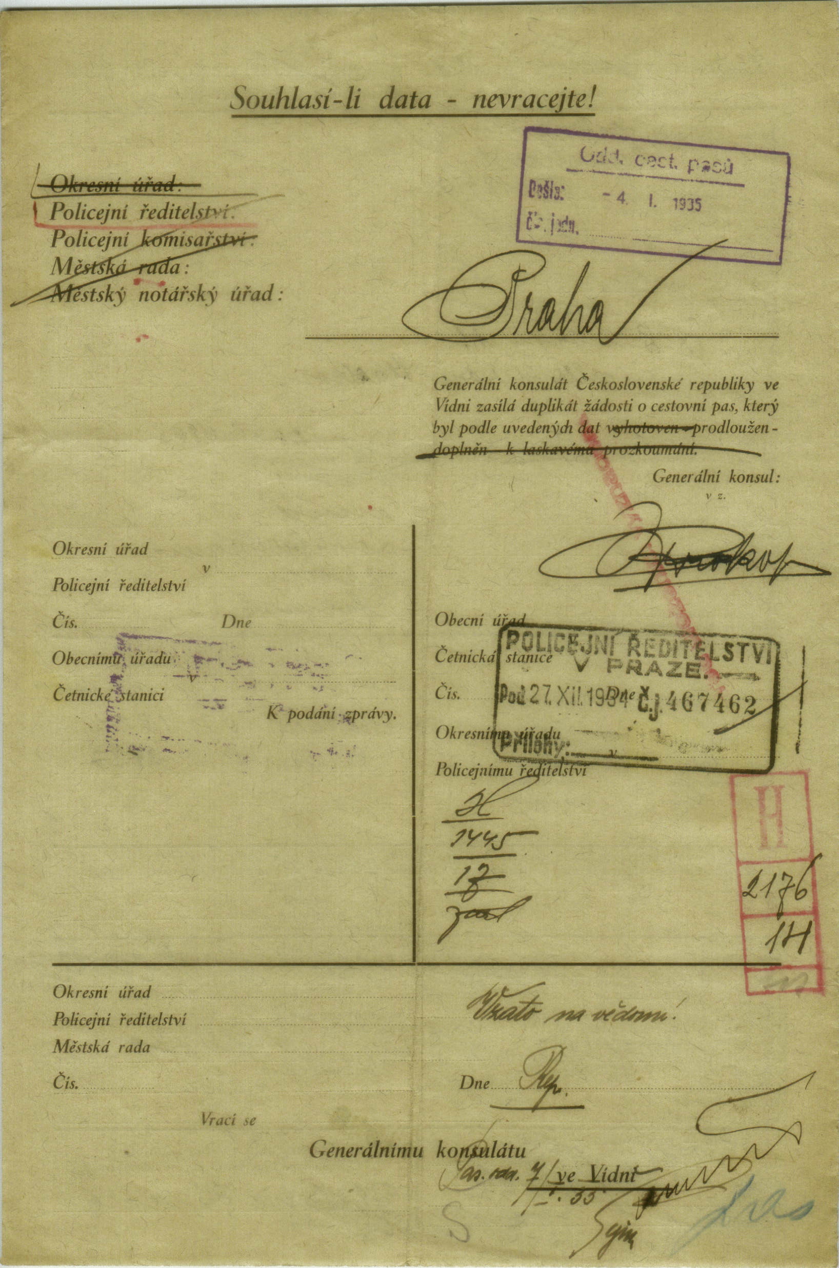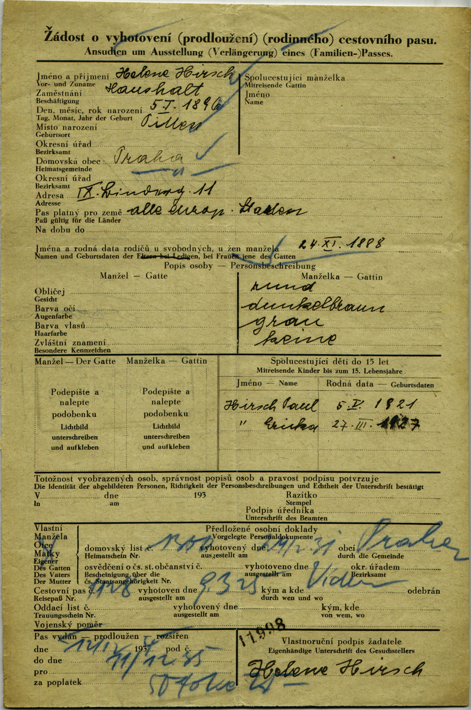 Hirschová Helena: Žádost o prodloužení cestovního pasu