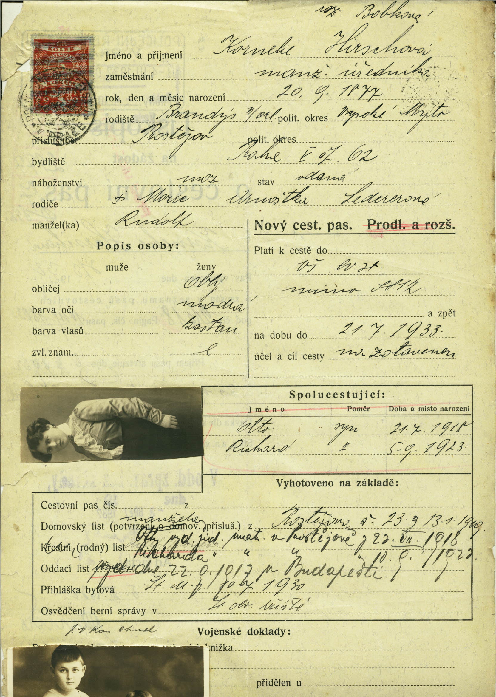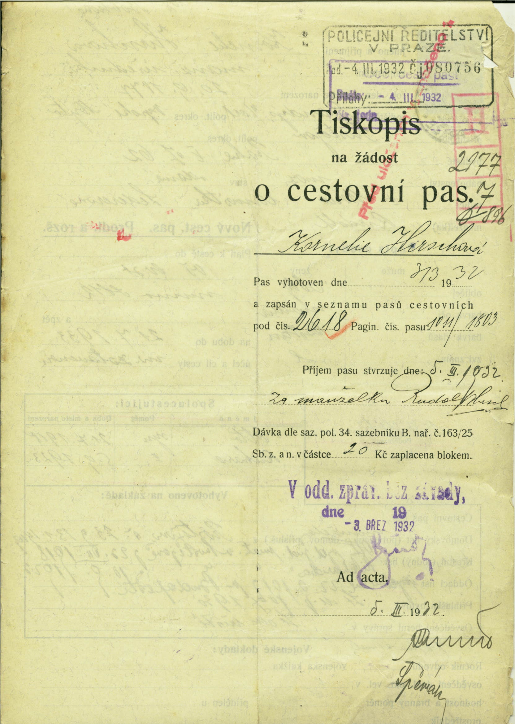 Hirschová Kornelie: Žádost o vydání cestovního pasu