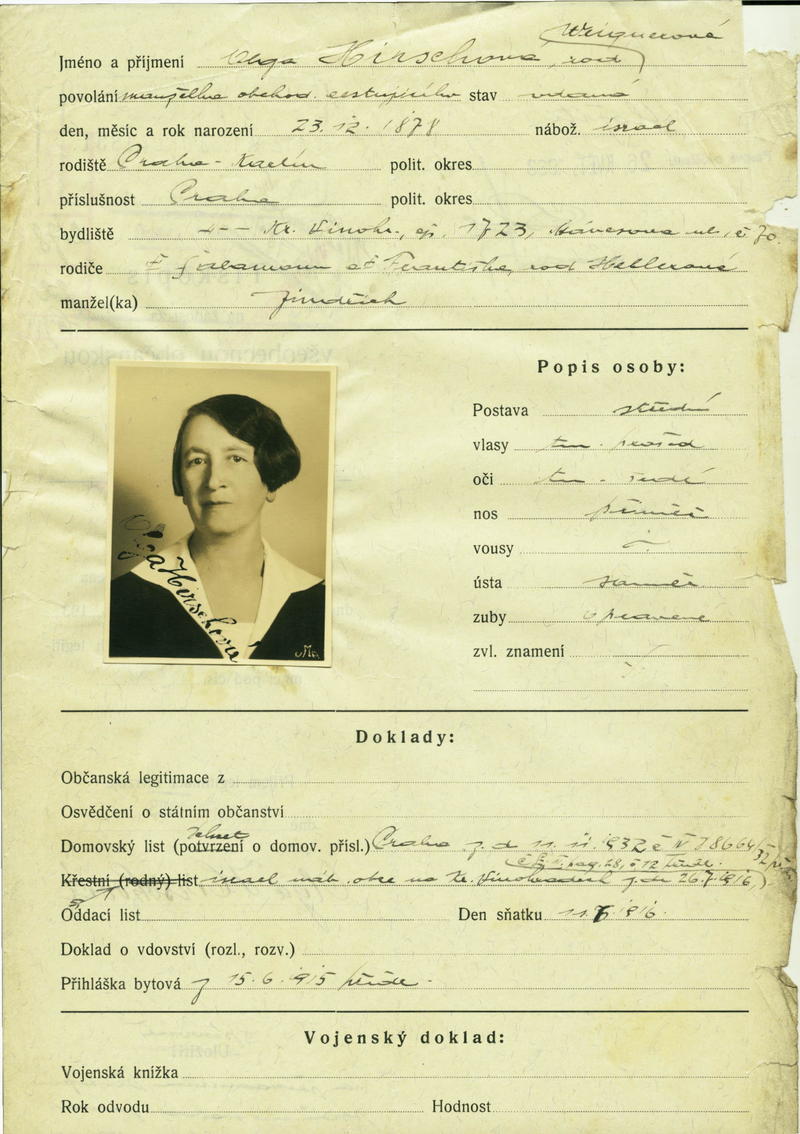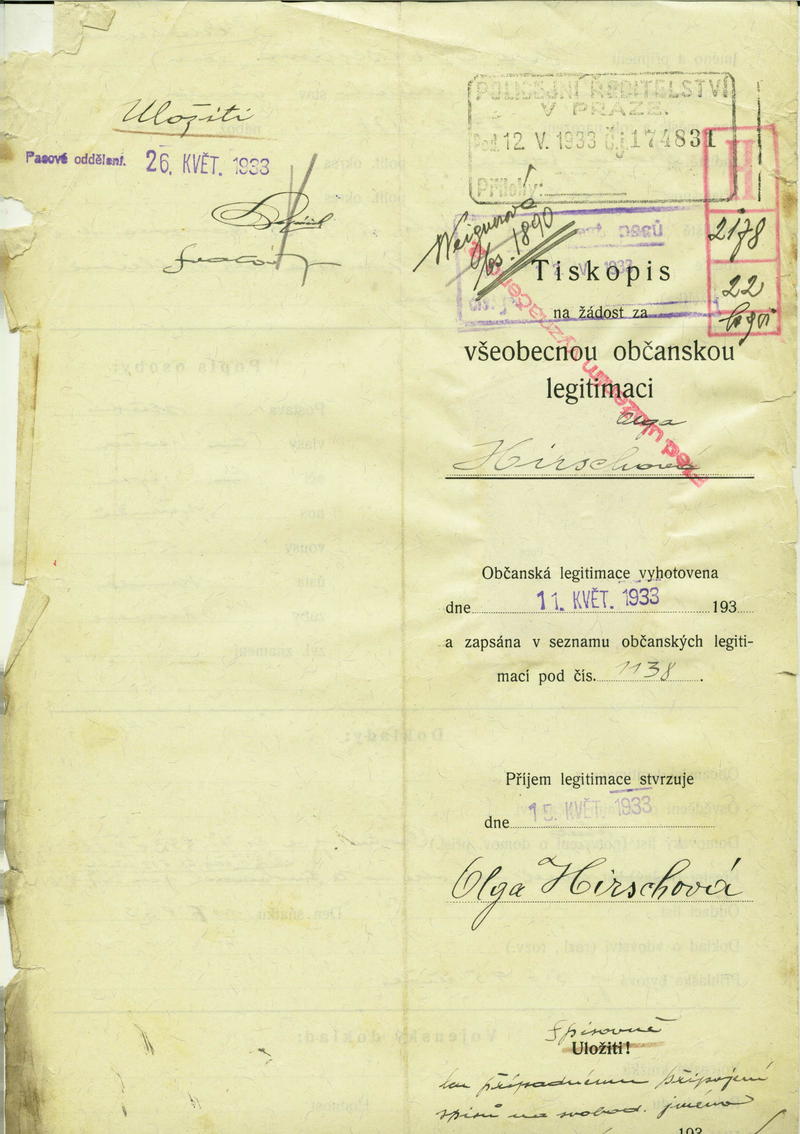 National archives Prague > Police Directorate Prague > 1931-1940 > H > Hirschová Olga