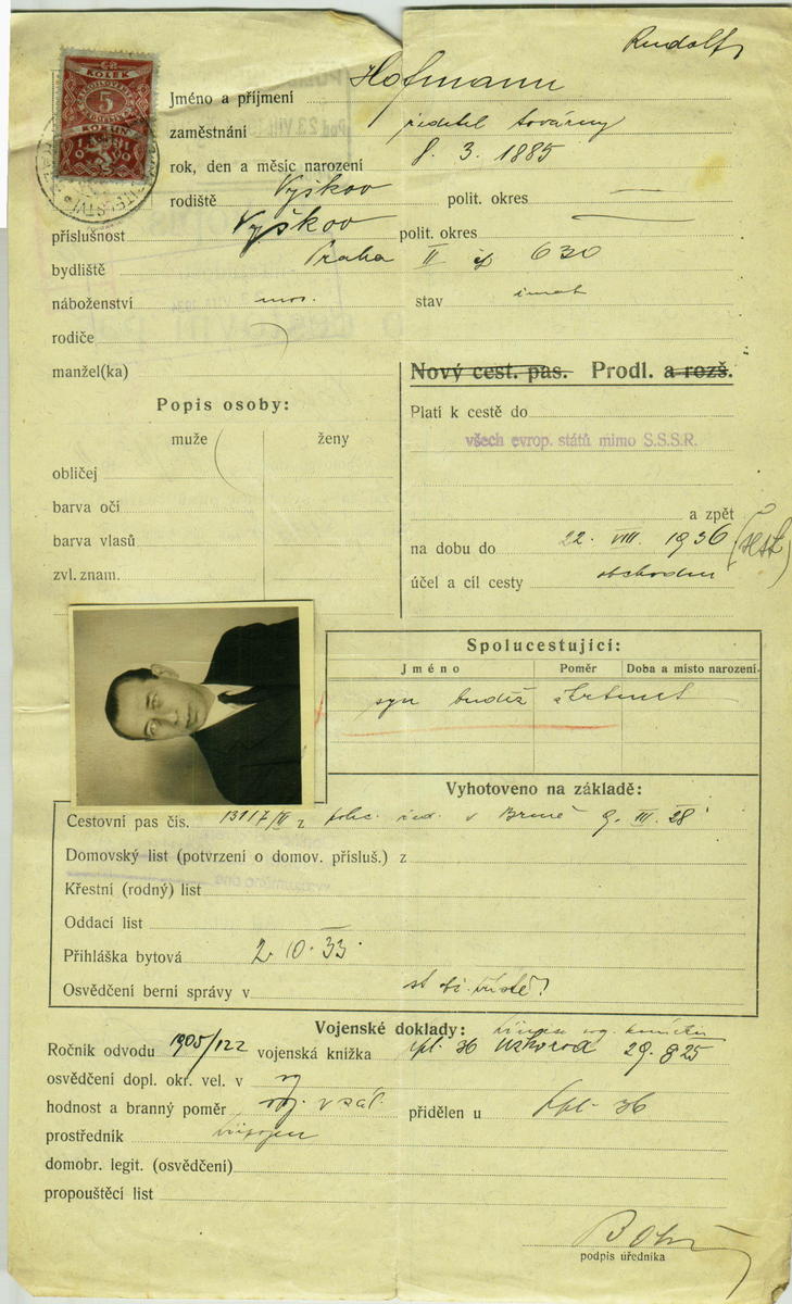 National archives Prague > Police Directorate Prague > 1931-1940 > H > Hofmann Rudolf